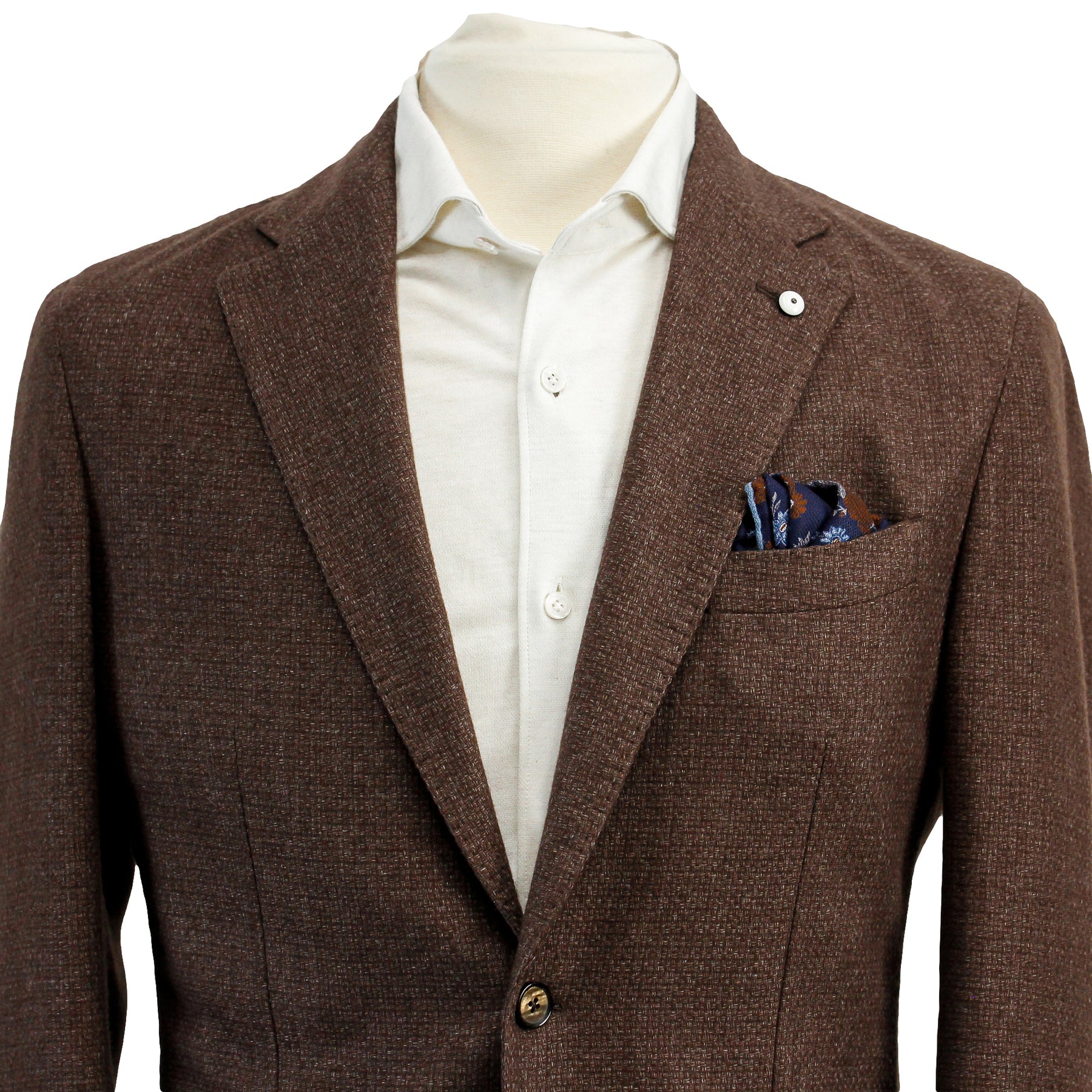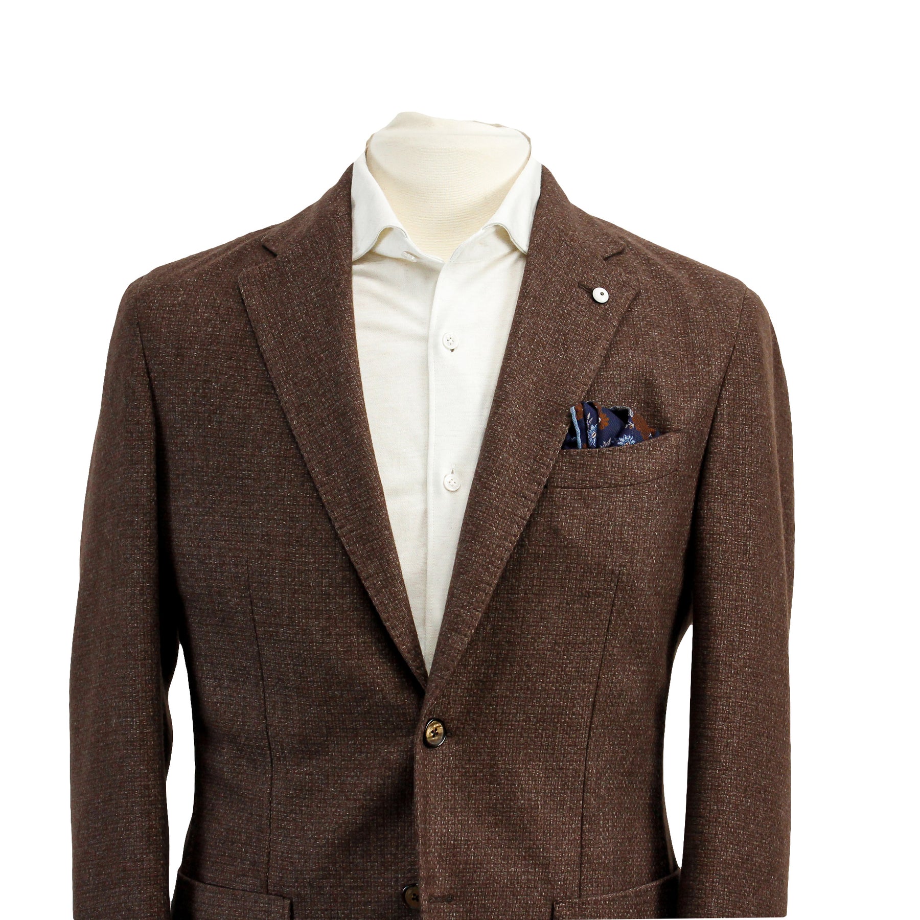 Elevate your fall and winter wardrobe with the Chocolate Brown Unconstructed Sport Jacket by LBM 1911. Crafted in Italy, this jacket seamlessly blends style and comfort to create a versatile addition to your collection. Made from stretchy Wool Jersey fabric, it offers both flexibility and a luxurious feel. The eye-catching rich brown check adds a touch of character and uniqueness to your look. Whether you're dressing down with jeans or five-pocket pants for the office or dressing up for events with a collared shirt or knit, this jacket adapts effortlessly to your style. Featuring surgeons cuffs, it's a statement piece that exudes sophistication and sets you apart from the crowd. Don't miss the opportunity to own this stylish and versatile Brown Unconstructed Sport Jacket, ideal for the fall and winter season. Order now and make a lasting impression wherever you go, showcasing your unique sense of style and elegance.