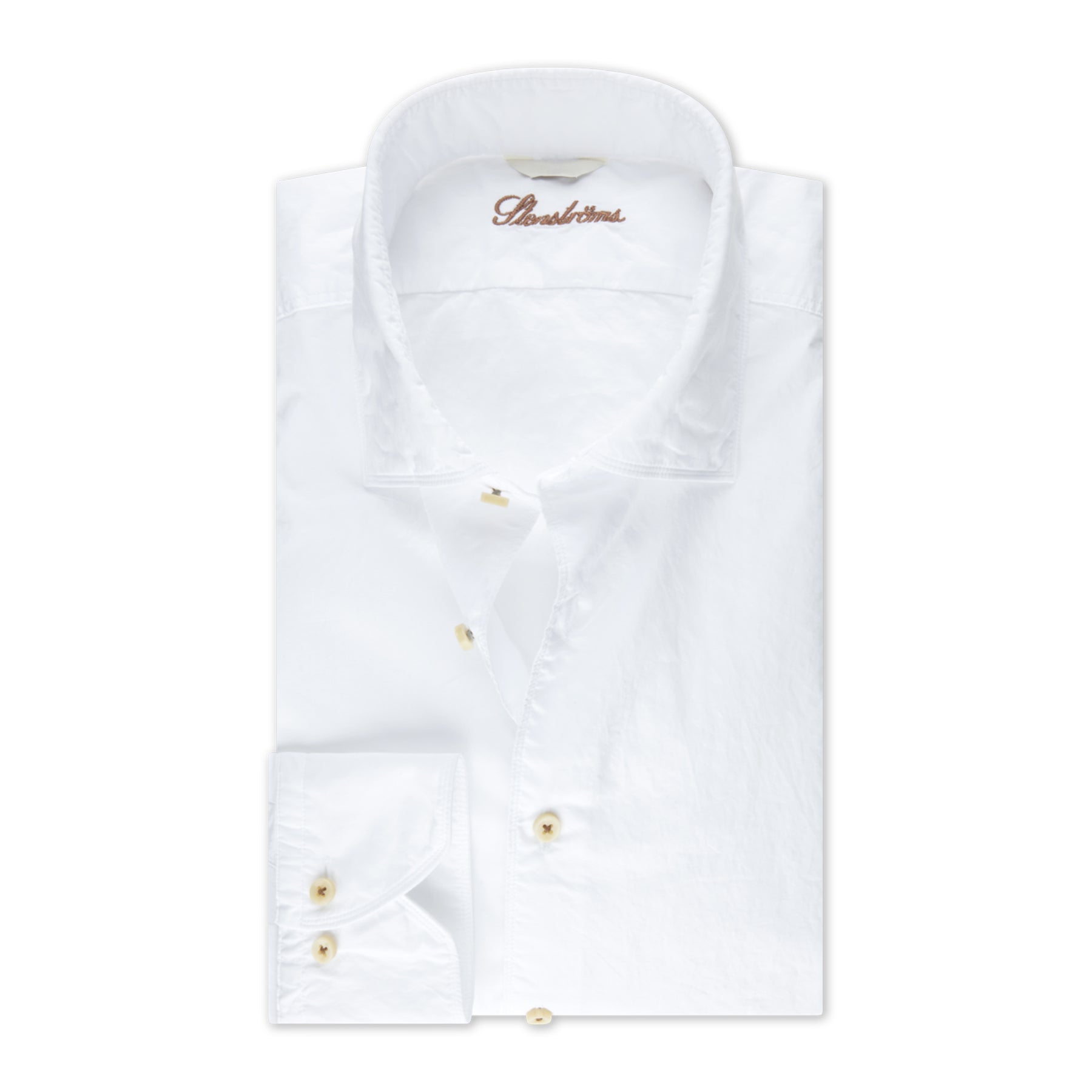 White Solid Cotton Poplin Fitted Body Casual Shirt - Stenströms