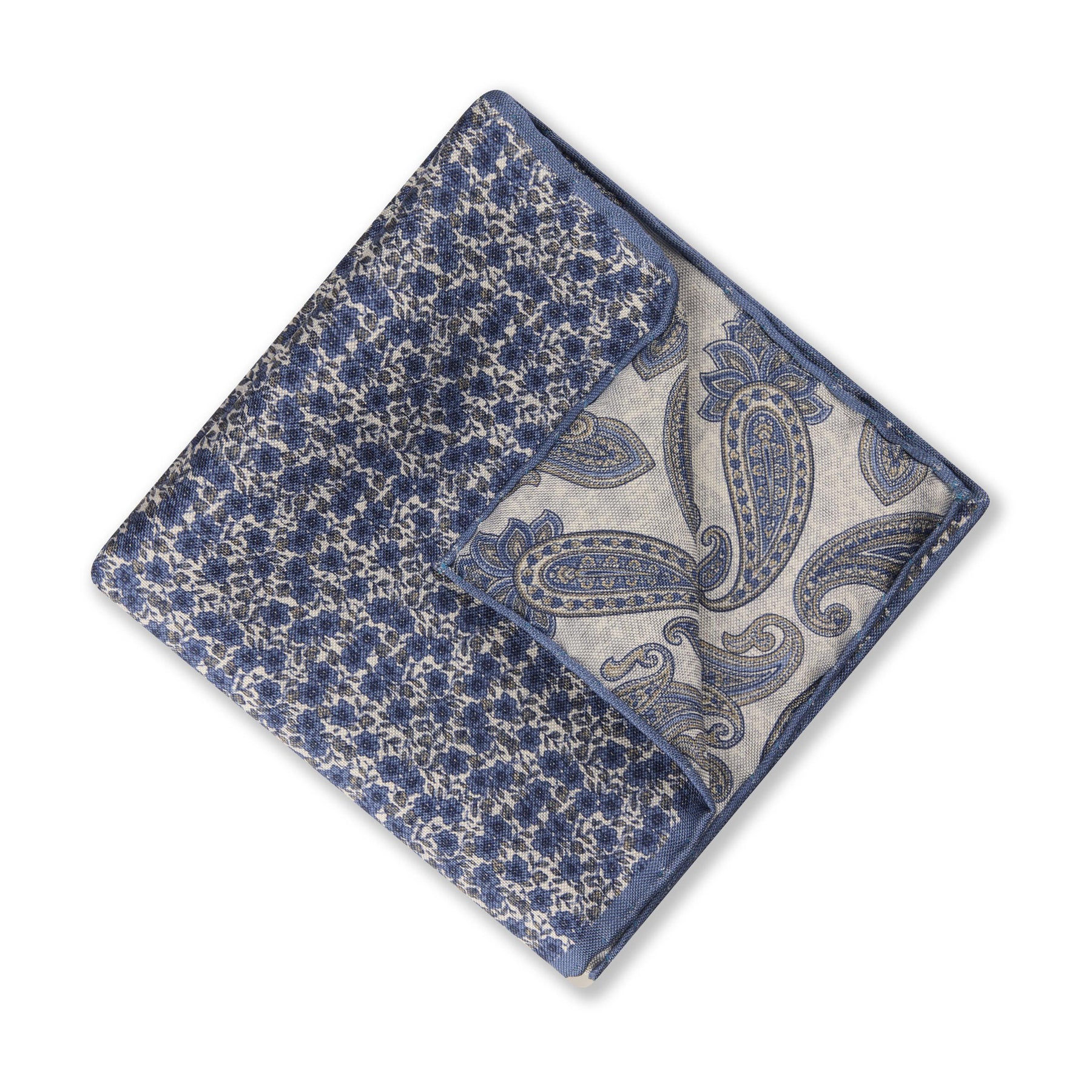 Blue & Gray Paisley/Floral Reversible Silk Hankie - Stenströms