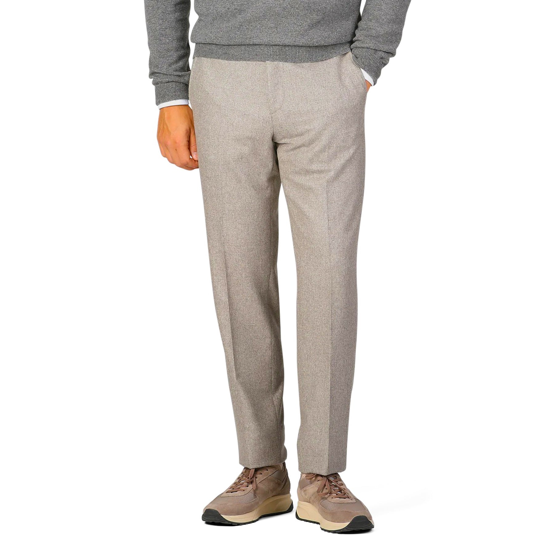 In the world of refined menswear, few garments strike the balance between elegance, comfort, and versatility quite like a perfectly tailored flannel pant. The Taupe Flannel Contemporary Fit Wool Dress Pant from Luigi Bianchi embodies this balance, crafted in Italy from Vitale Barberis Canonico’s Super 120’s flannel—a fabric synonymous with heritage, sophistication, and performance.