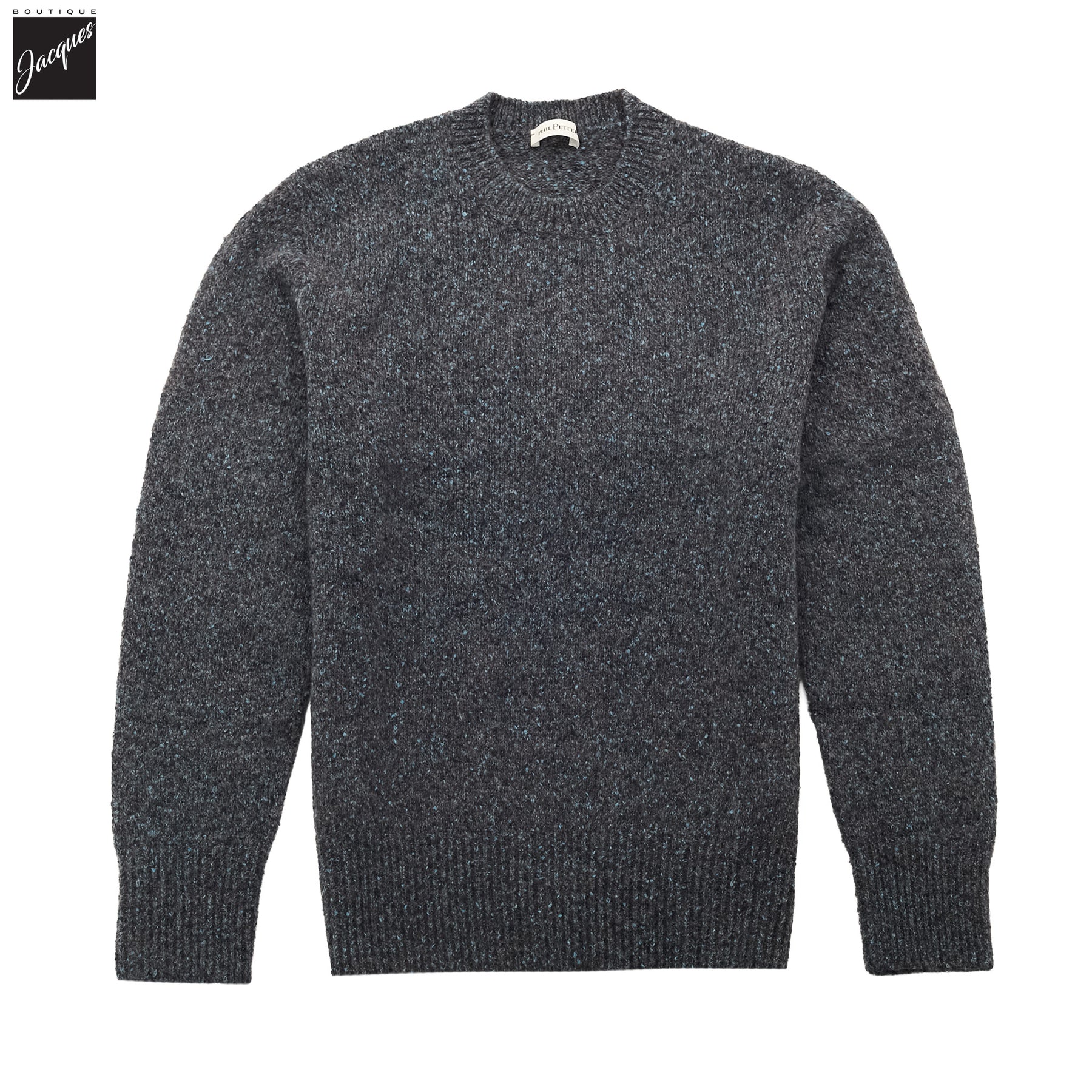 Rich in texture and thoughtfully constructed, this Blue Mouliné Crewneck Pullover from Phil Petter is a masterclass in modern knitwear. Made in Austria using a luxurious blend of alpaca, wool, cotton, and polyamide, it features a unique 3D seamless knit that enhances both comfort and structure. The mouliné yarn blends tones of mid blue, light blue, and gray to create a tweed-inspired look with exceptional visual depth.