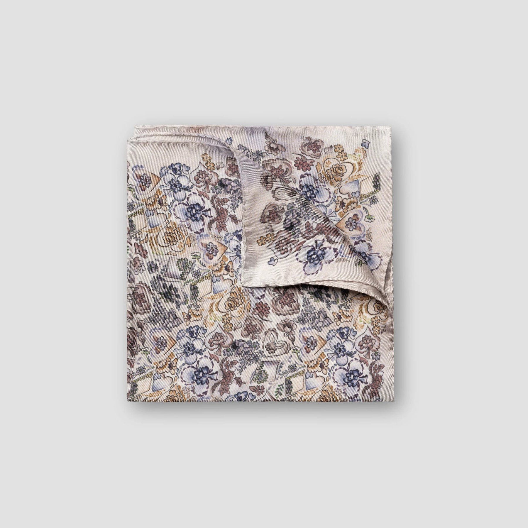 Ice Gray Multicolour Floral Silk Pocket Square - ETON