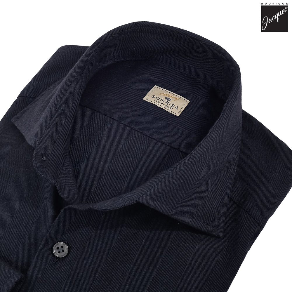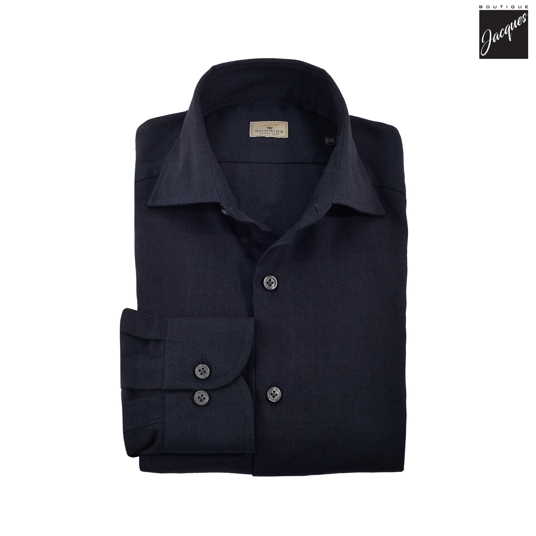 This Navy Blue Semi-Solid Lux Flannel Shirt from the Italian shirt brand SONRISA is made with an exceptionally soft and comfortable brushed cotton-lyocell fabric.