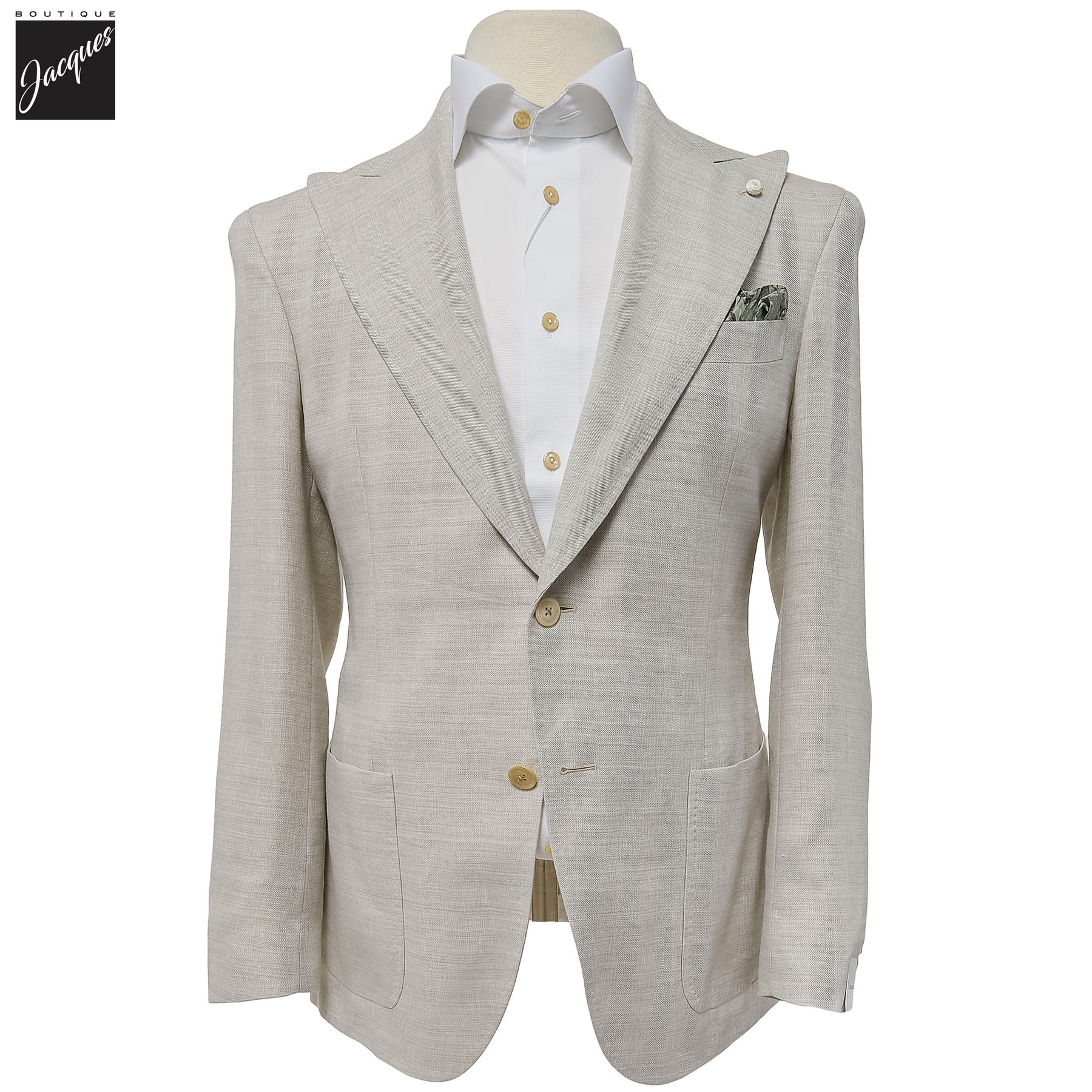 Oatmeal Linen-Wool Dream Fit Sport Jacket w/ Peak Lapels - Luigi Bianchi