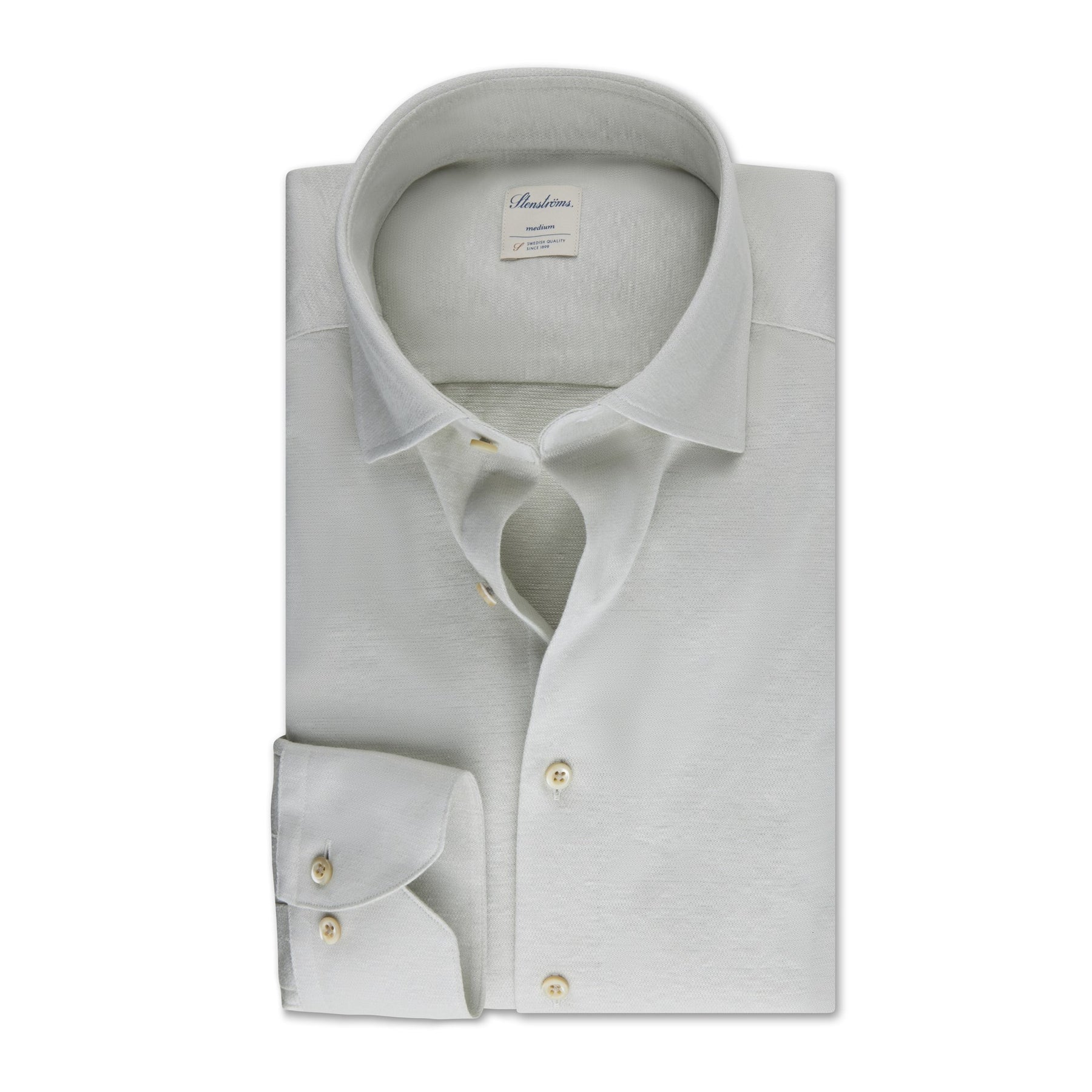 This light beige jersey shirt is made to fit you perfectly. This stretch shirt allows for perfect freedom of movement, impeccable wearability and maximum retention of shape of garments even after repeated washing. Wear it as a comfortable shirt at the office or on your way from your workout.