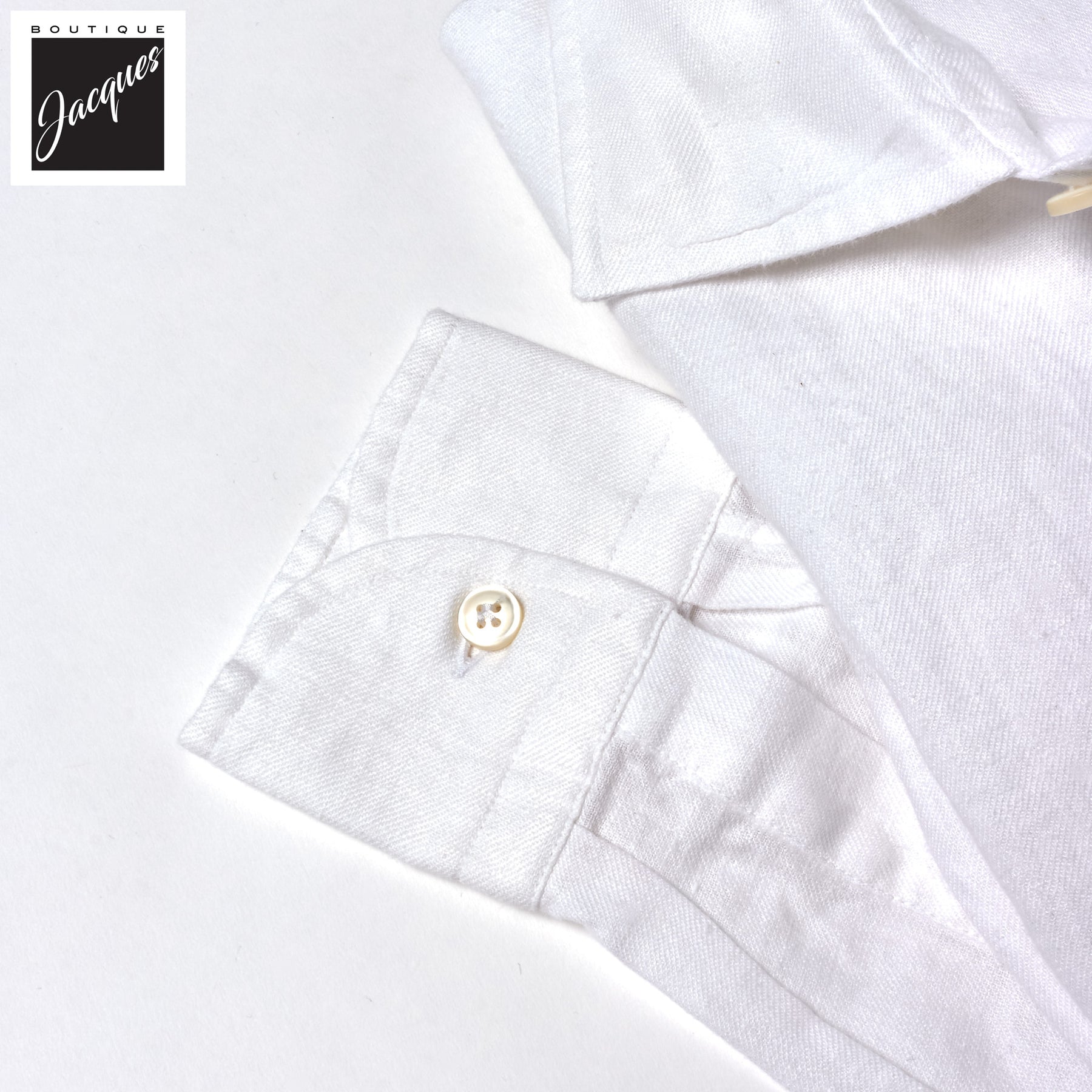 This beautiful shirt is made from pure linen in Italy by SONRISA. This piece comes in a classic white colour, featuring a spread collar with removable collar stays, single-rounded cuffs, and a modern fit.
