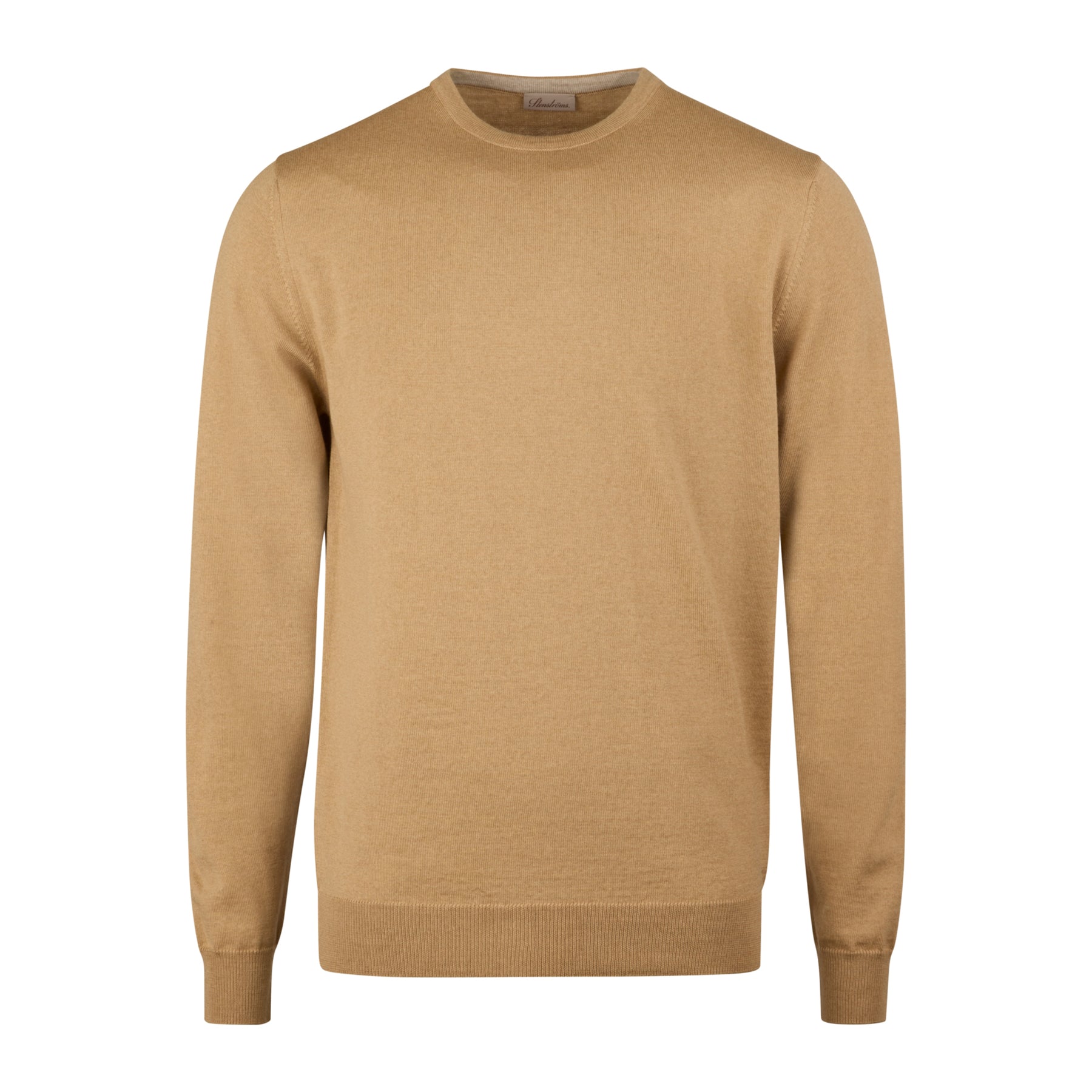 Camel Beige Merino Wool Crew Neck Sweater with Elbow Patches - Stenströms