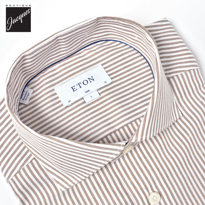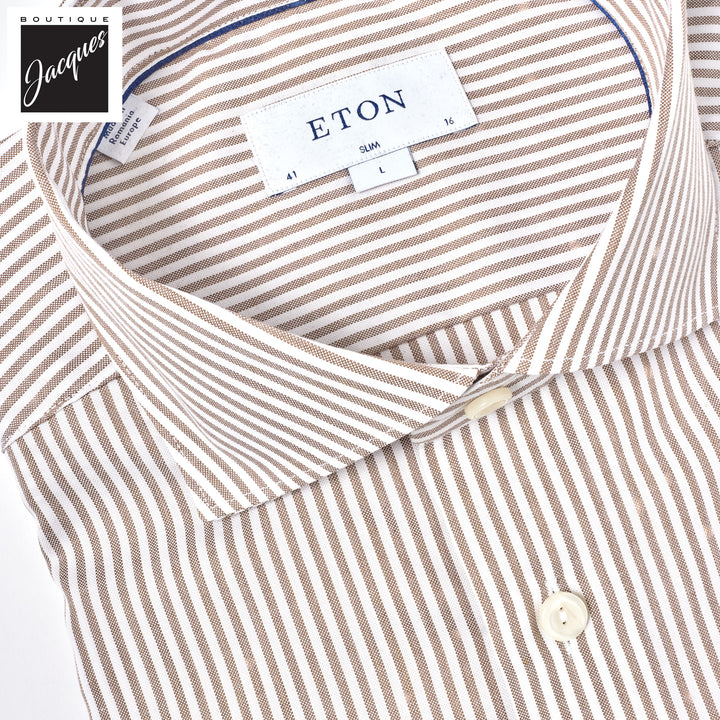 Beige Bengal Stripe Oxford Slim Fit Shirt - Eton