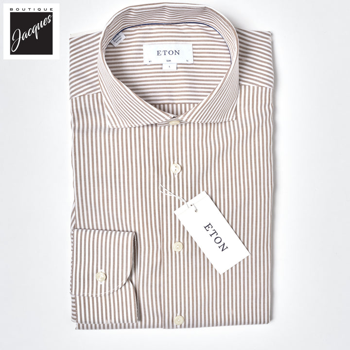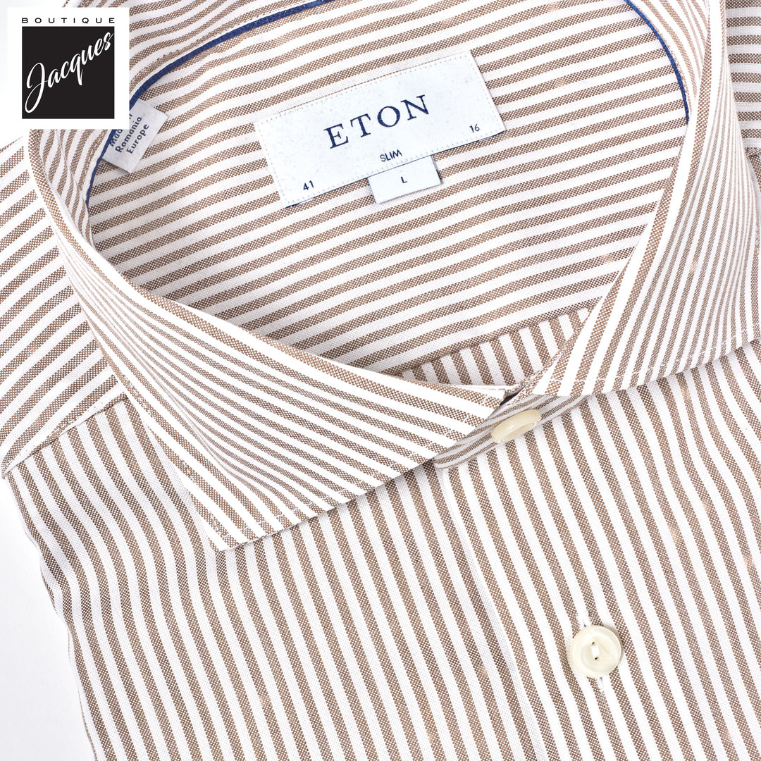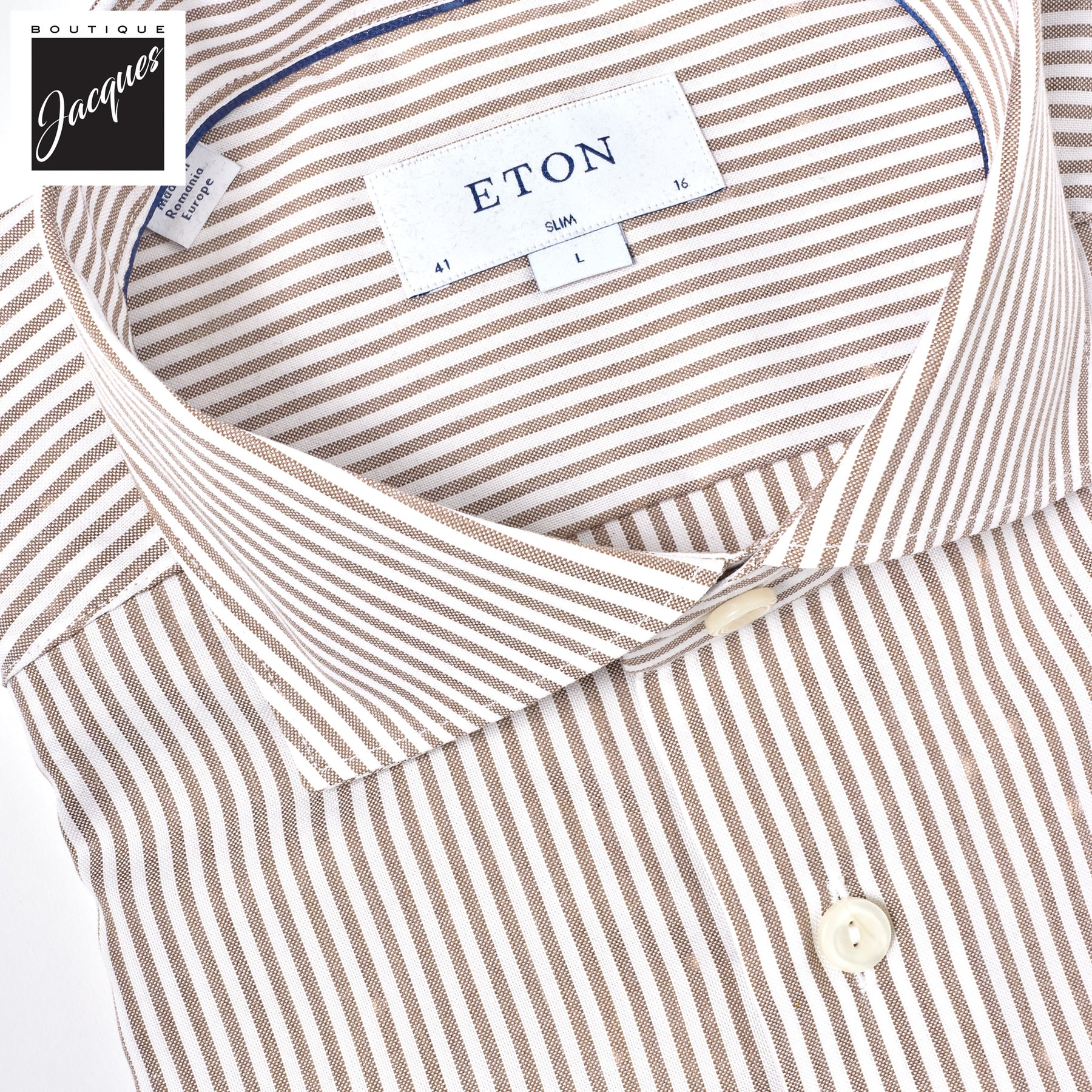 Overall, the beige striped dress shirt by ETON is a premium-quality piece that will elevate your wardrobe and leave you feeling confident and stylish. Whether you're attending a formal event or heading to the office, this shirt is sure to make a lasting impression.