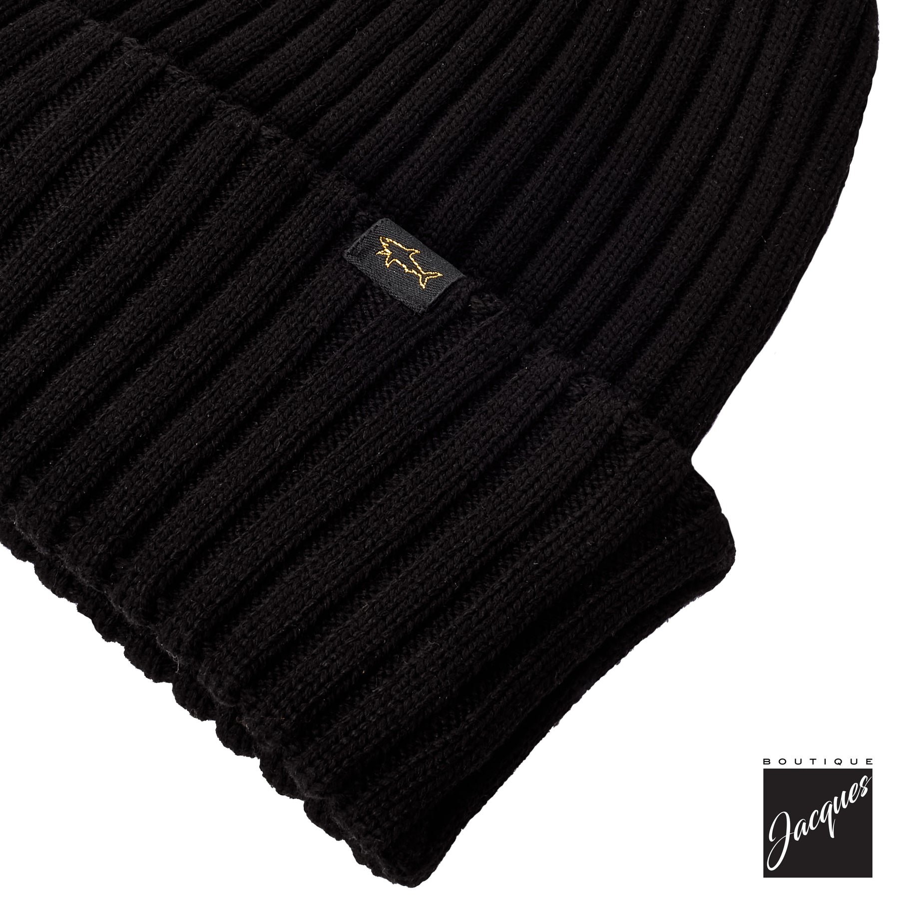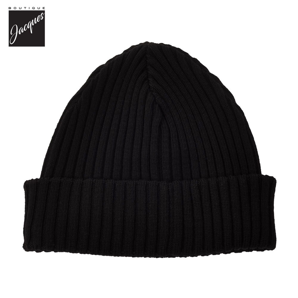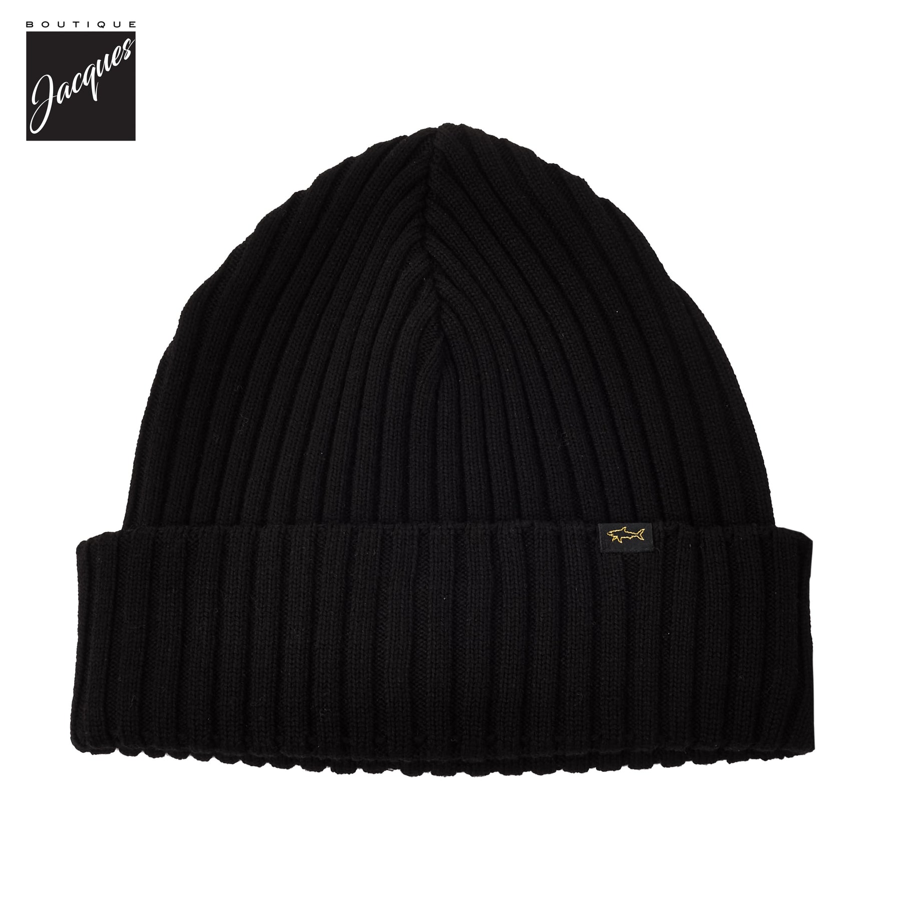 Black Shark Tag Soft Cool-Touch Wool Ribbed Beanie - Paul & Shark