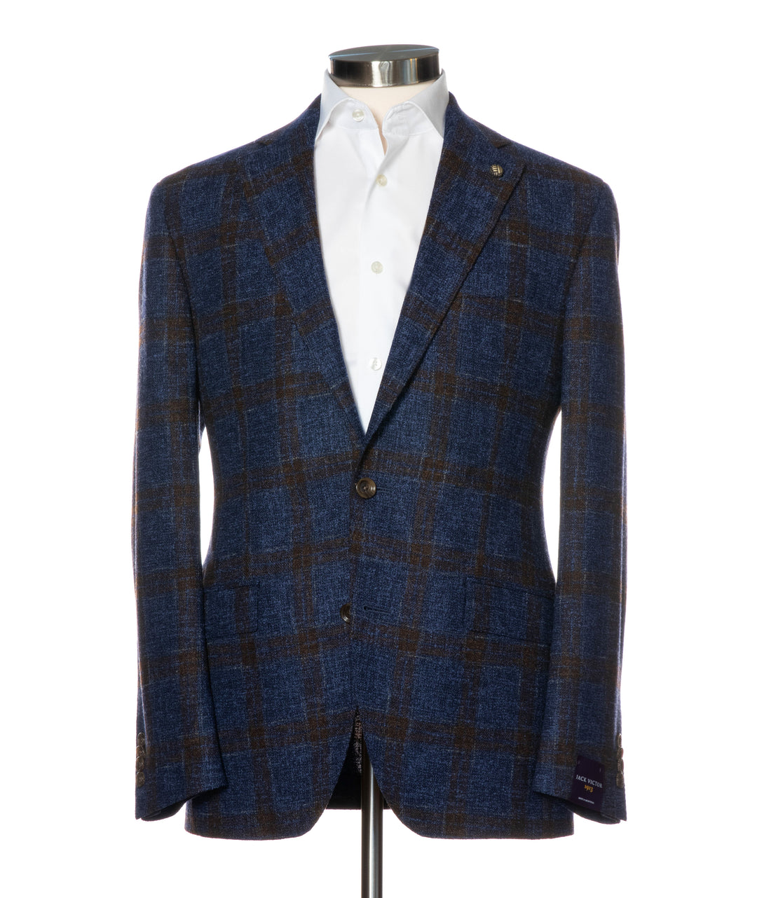 Blue with Brown Glen Check McAllen Contemporary Fit Sport Coat - Boutique Jacques International