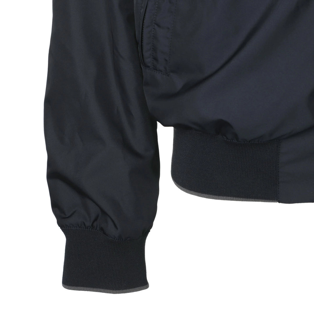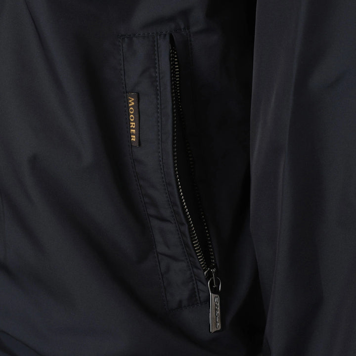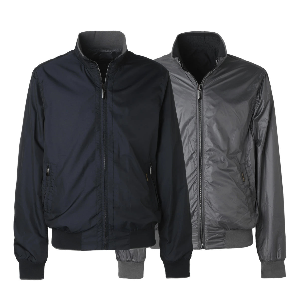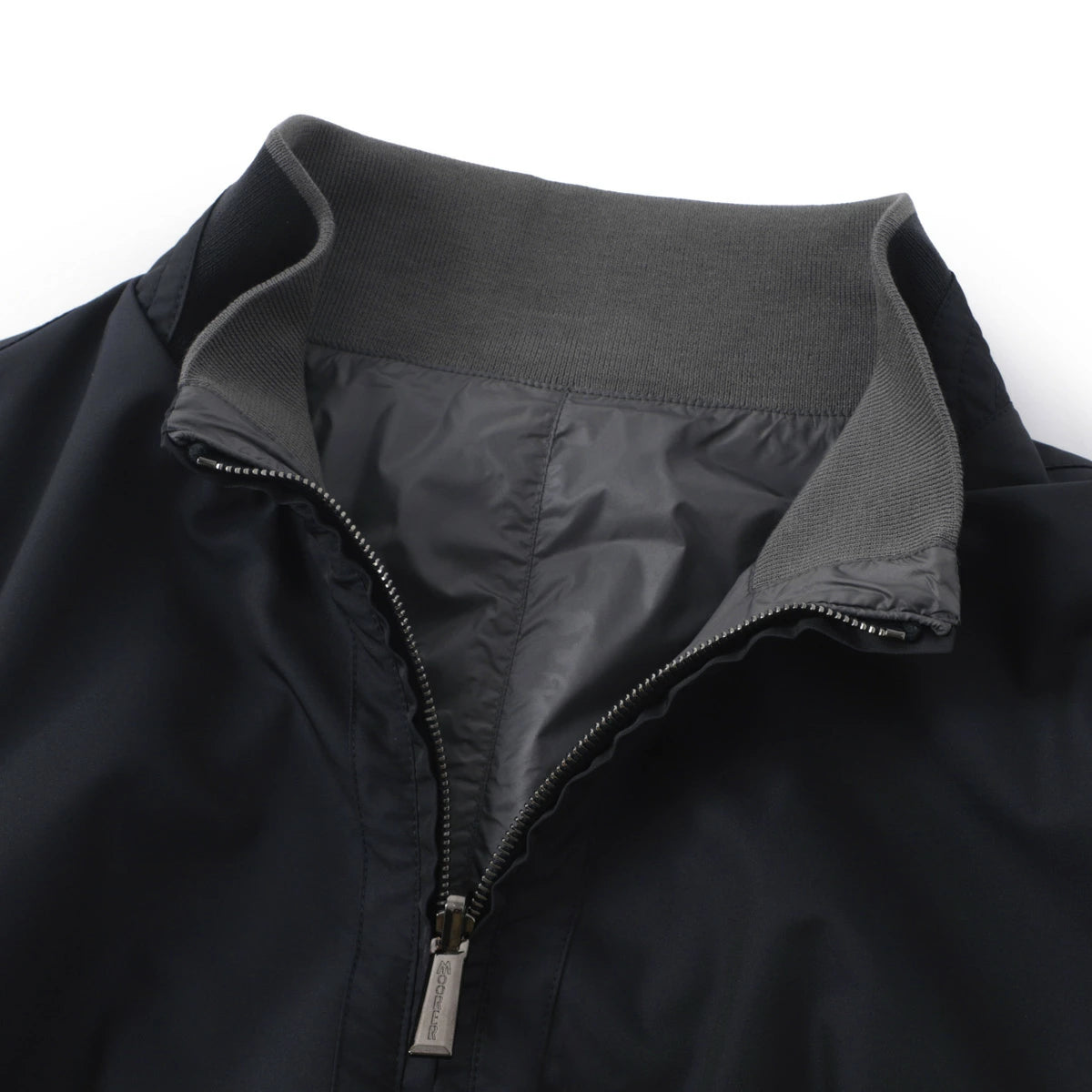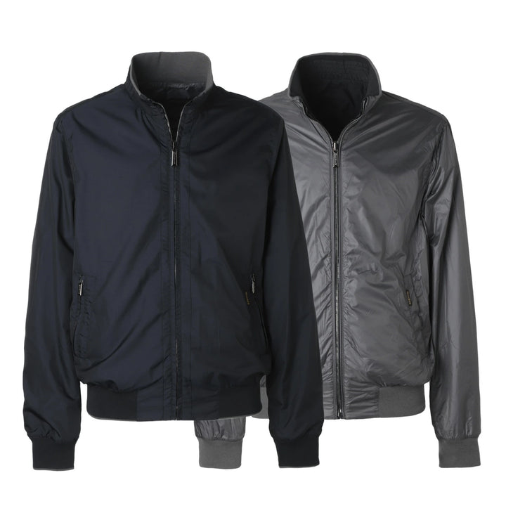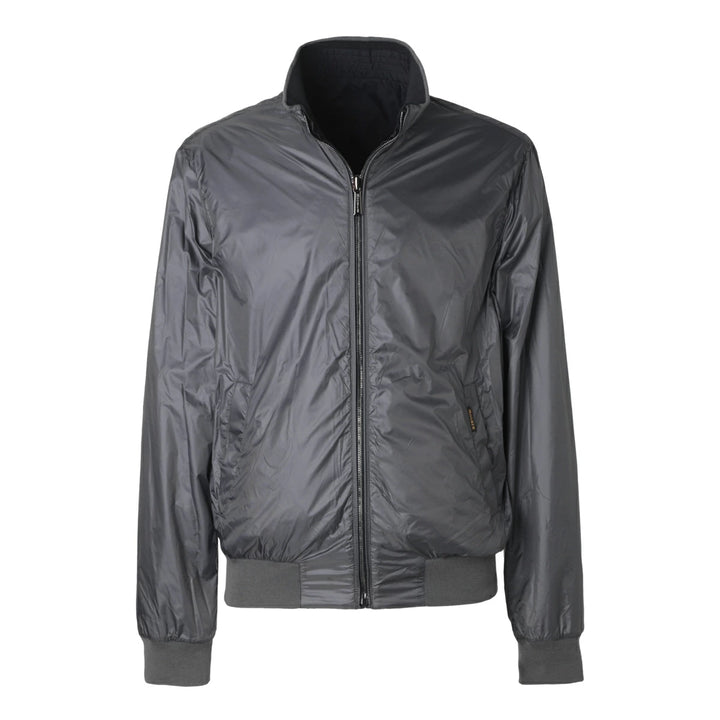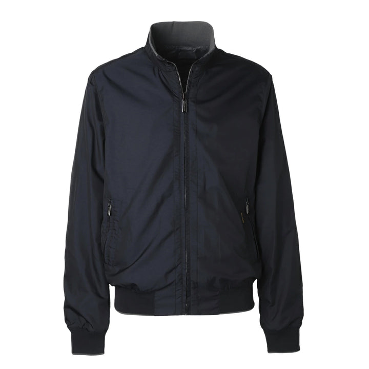 Get ready for transitional weather with this reversible bomber jacket from MooRER. Finely crafted in Italy, this wardrobe essential is composed of a "memory sharp" fabric on one side and a "Pirax" fabric on the reverse side. These fabrics have hydro-repellent and shape retention qualities which are ideal for light weight transitional jackets.