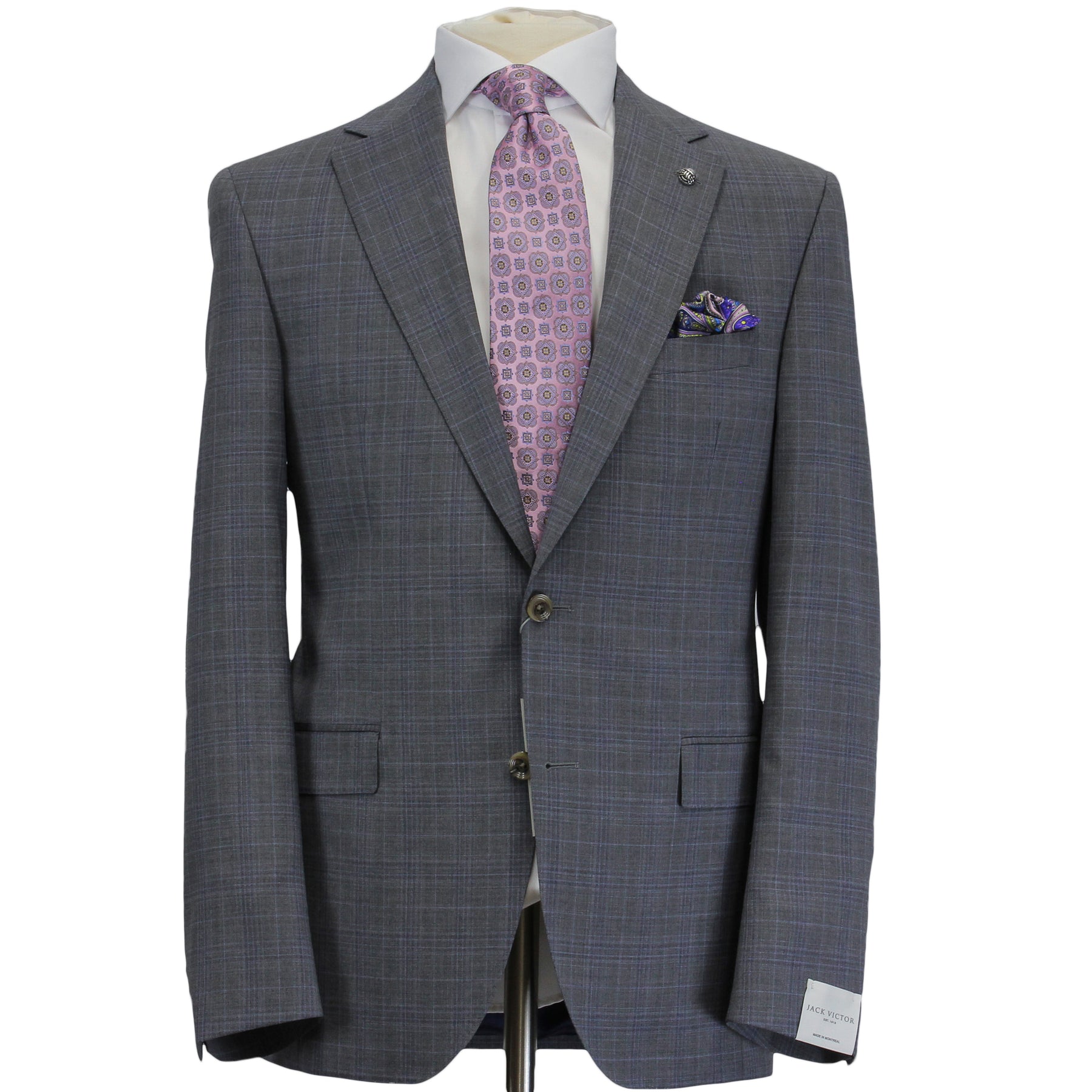 Introducing the Jack Victor Gray Blue Check Suit: a symbol of sophistication, style, and impeccable craftsmanship designed for the modern gentleman. This elegant suit, available exclusively at our high-end menswear store, is the perfect addition to your wardrobe, exuding contemporary finesse and unparalleled quality.