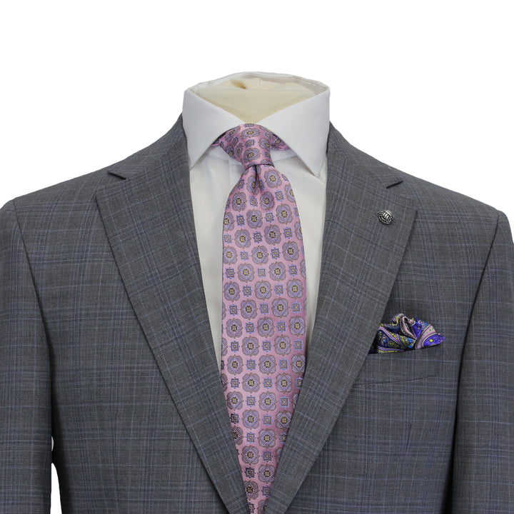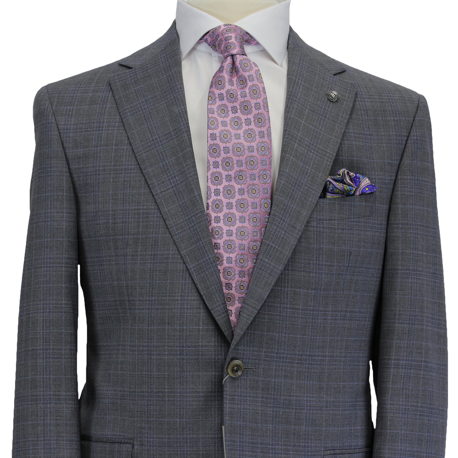 Gray with Blue Check Esprit Modern Fit Wool Suit - Jack Victor