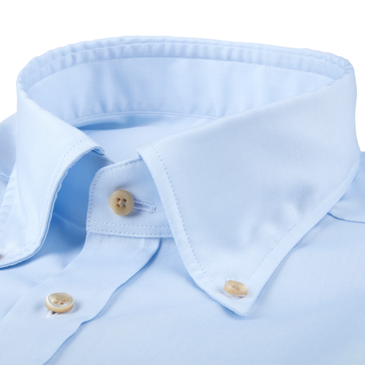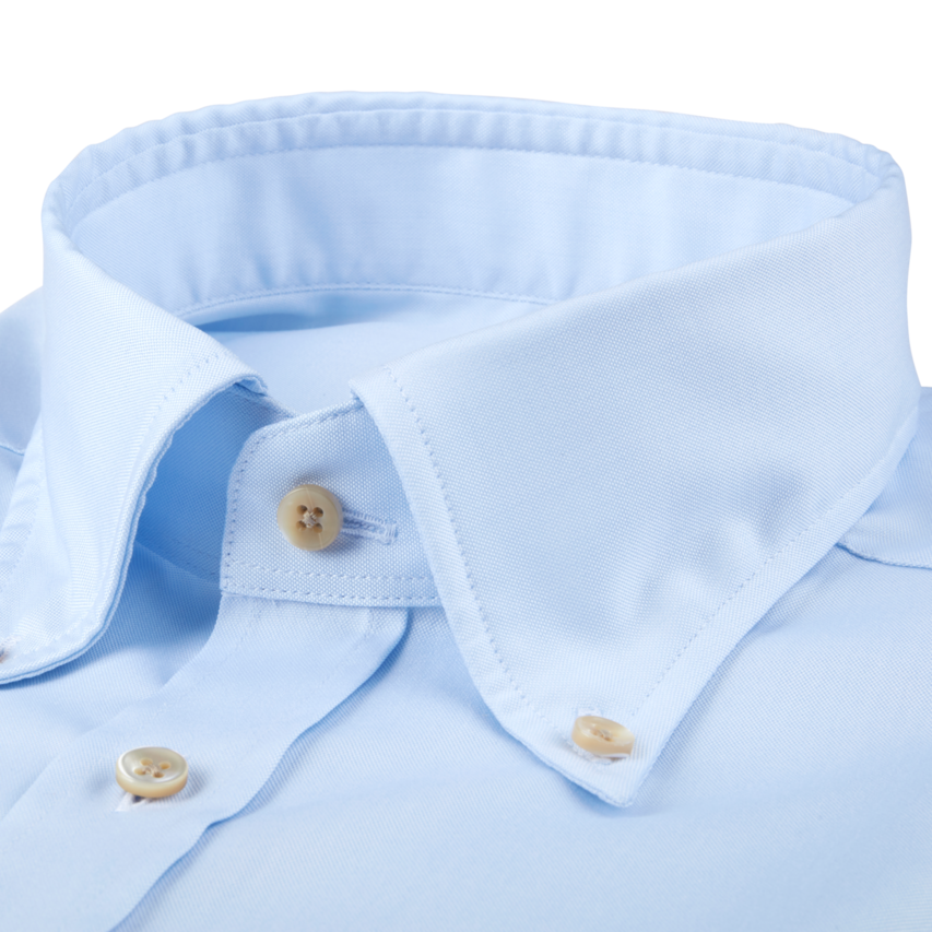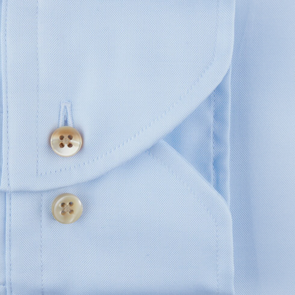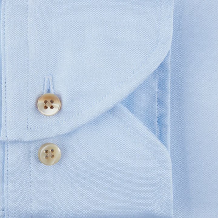 This casual shirt in light blue features mother of pearl buttons, a button down collar and single adjustable cuffs. It is cut from superior oxford twill for a slim and flexible fit. Wear it tucked into tailored pants, or untucked with a pair of jeans!