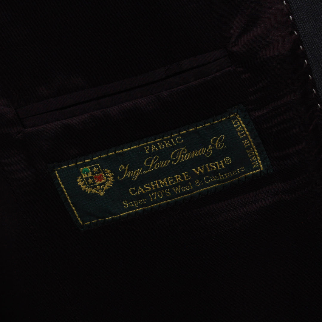 What truly sets this suit apart is the exceptional fabric. Made from Super 170's wool and cashmere woven in Italy by Loro Piana, this suit is a testament to Italian craftsmanship and quality. With this suit, you can embrace the allure of Loro Piana's Cashmere Wish Super 170's Wool and wrap yourself in a story of indulgence, comfort, and unparalleled grace.