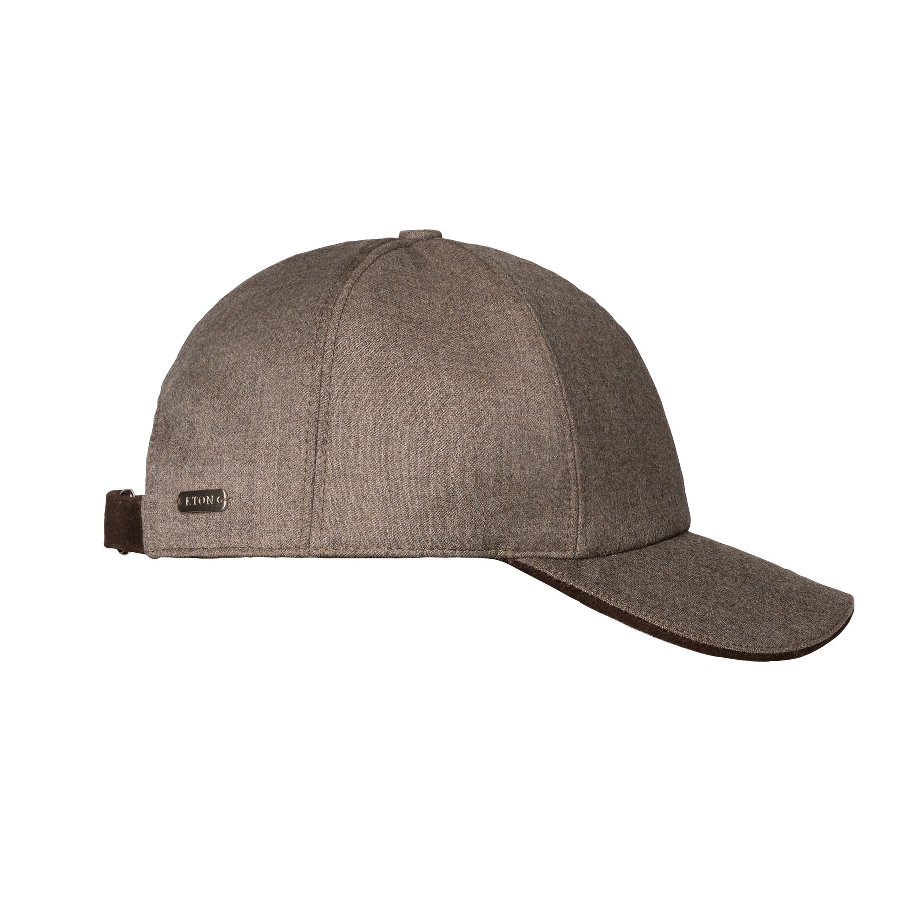 Stylish lined baseball cap crafted from a fine wool fabric sourced from master weaver Reda in Italy, gently brushed for a soft fall look. Featuring a dark brown suede size adjuster and embellished with piping around the visor, it has an embossed metal tag on the side.