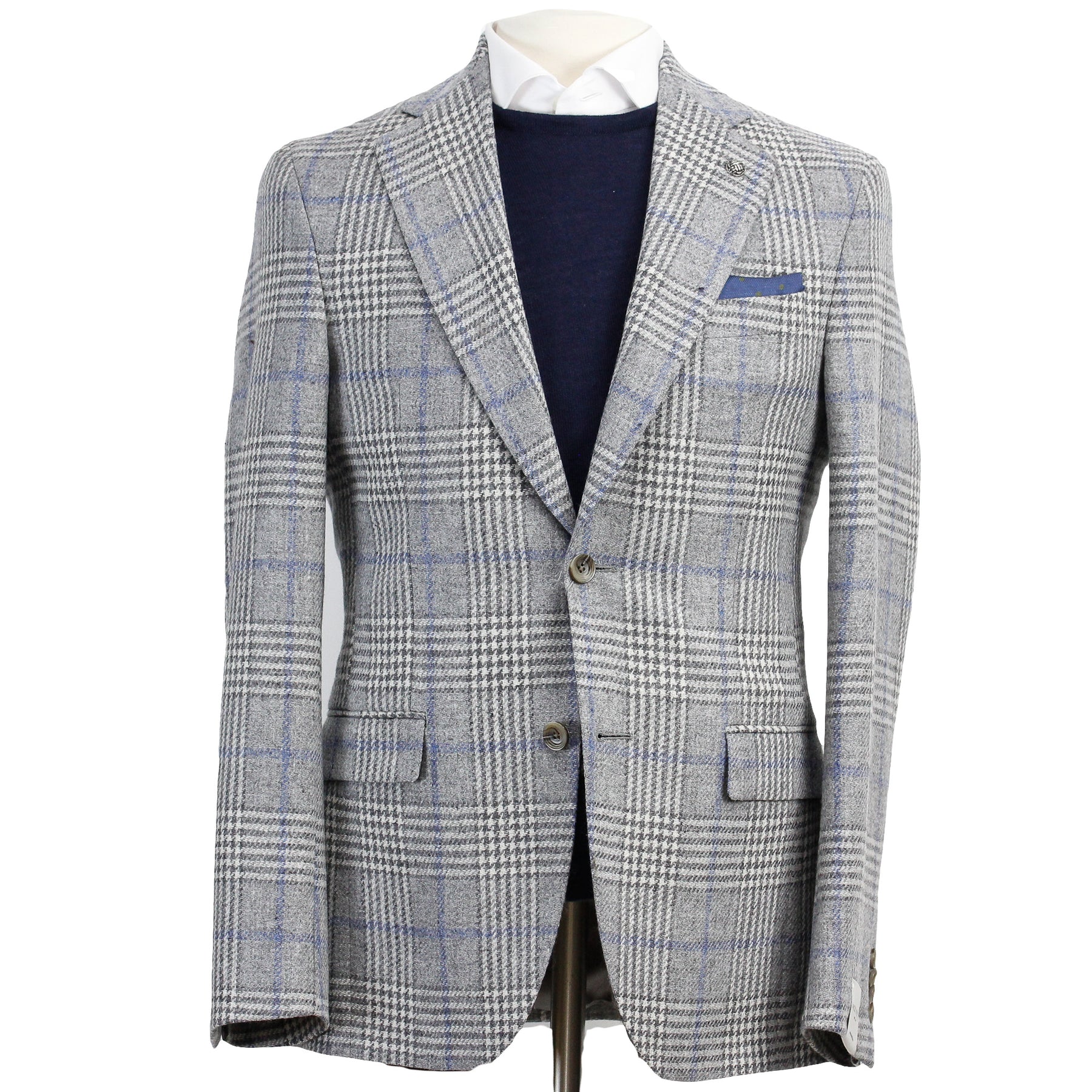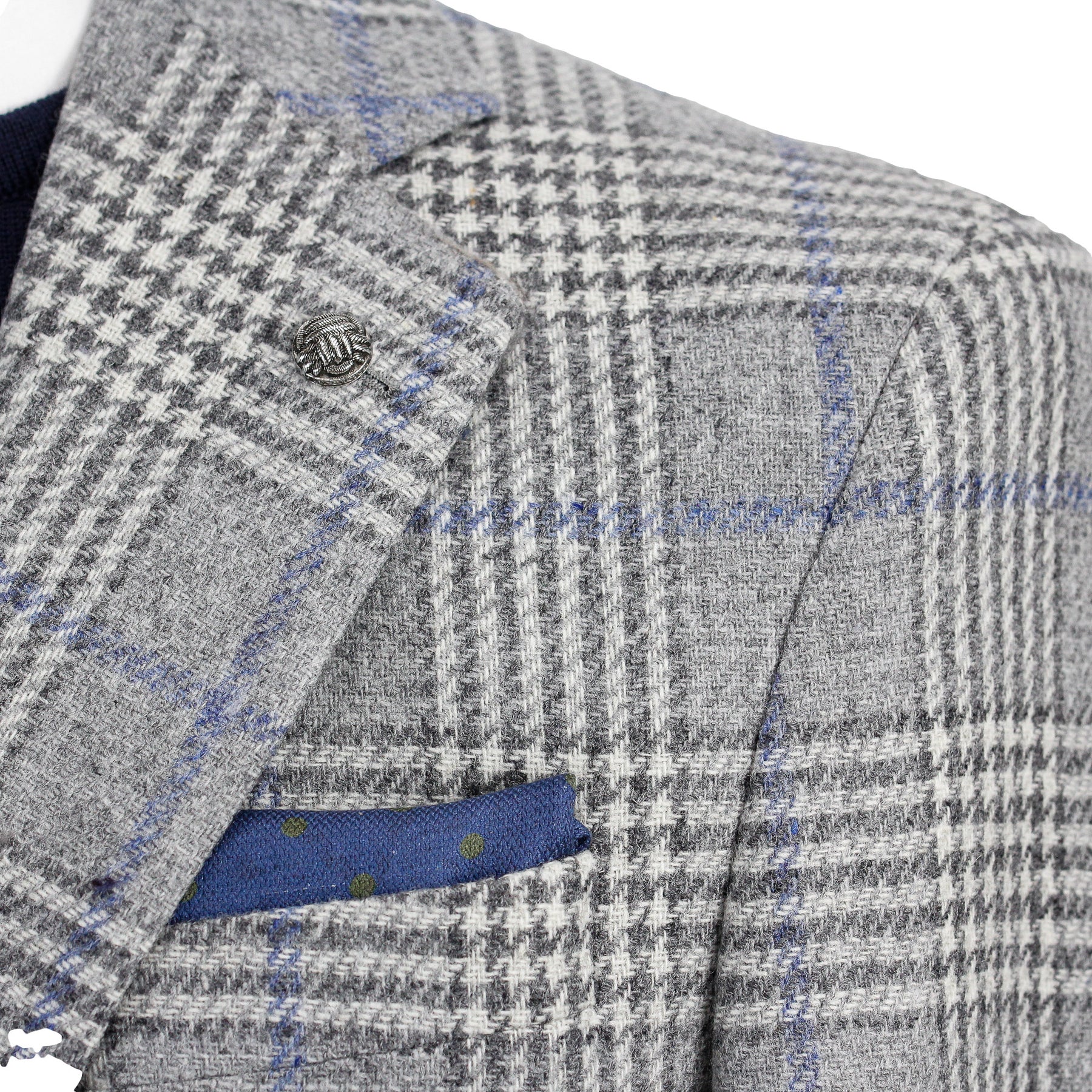 This sport jacket comes alive with its light gray base adorned with a subtle blue overcheck, making it the ideal choice for the fall and winter seasons. As a new arrival, it brings a breath of fresh air to your wardrobe, offering endless styling possibilities. Whether you're heading to the office or enjoying a casual evening, this jacket effortlessly complements your look.
