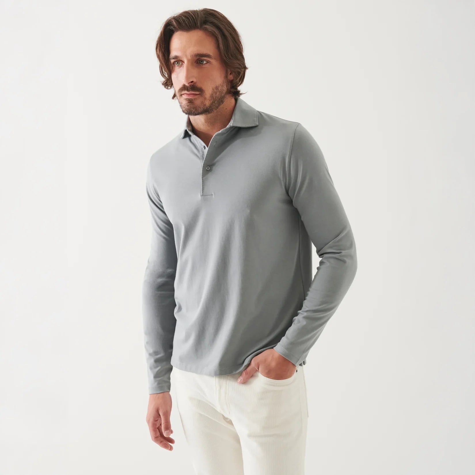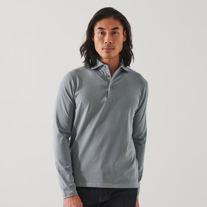 Our long sleeve polo is constructed from a luxurious Peruvian pima cotton stretch jersey. The collar is pick-stitched to give it an elevated look, allowing it to be worn casually or under a blazer for a more tailored outfit.