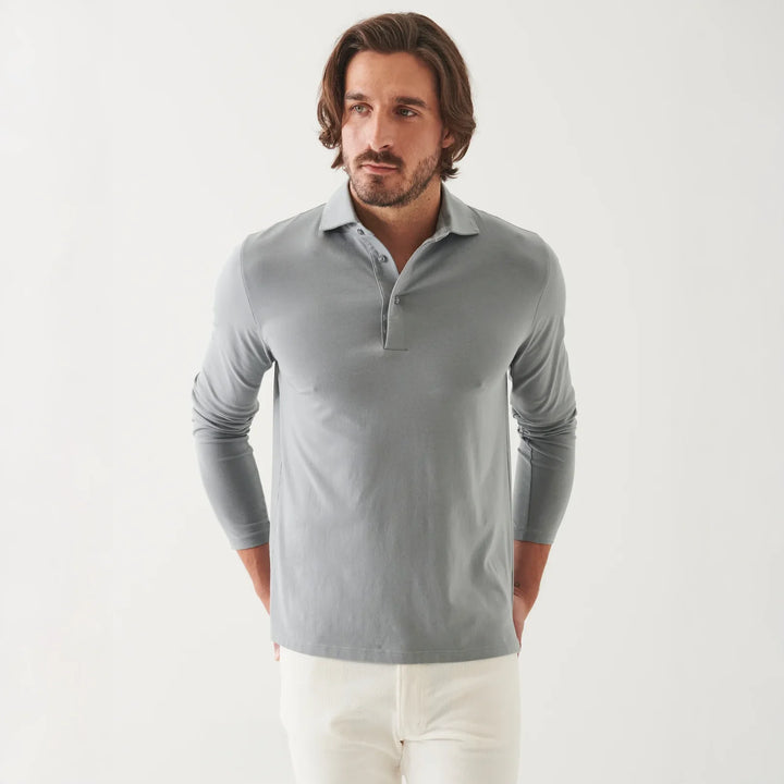 Gray Mist Mélange Long Sleeve Iconic Pima Stretch Polo - Patrick Assaraf