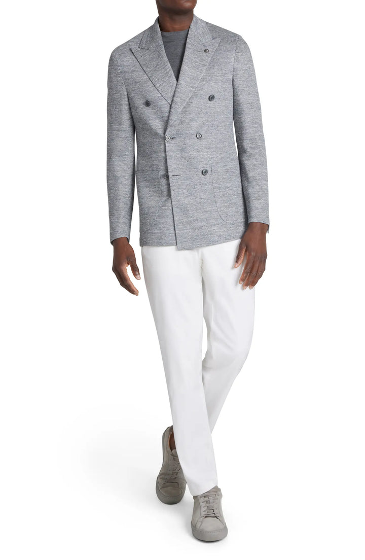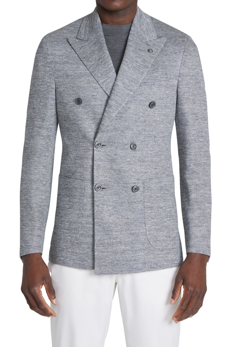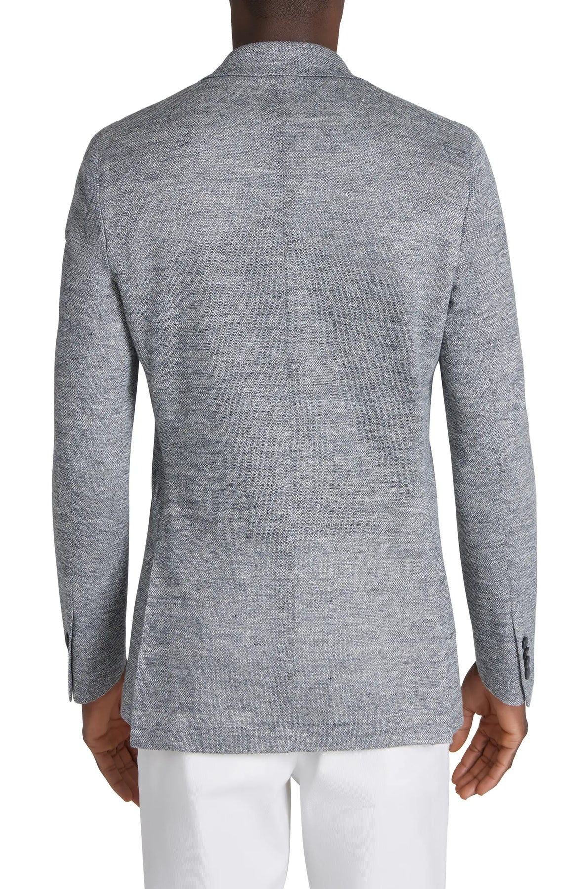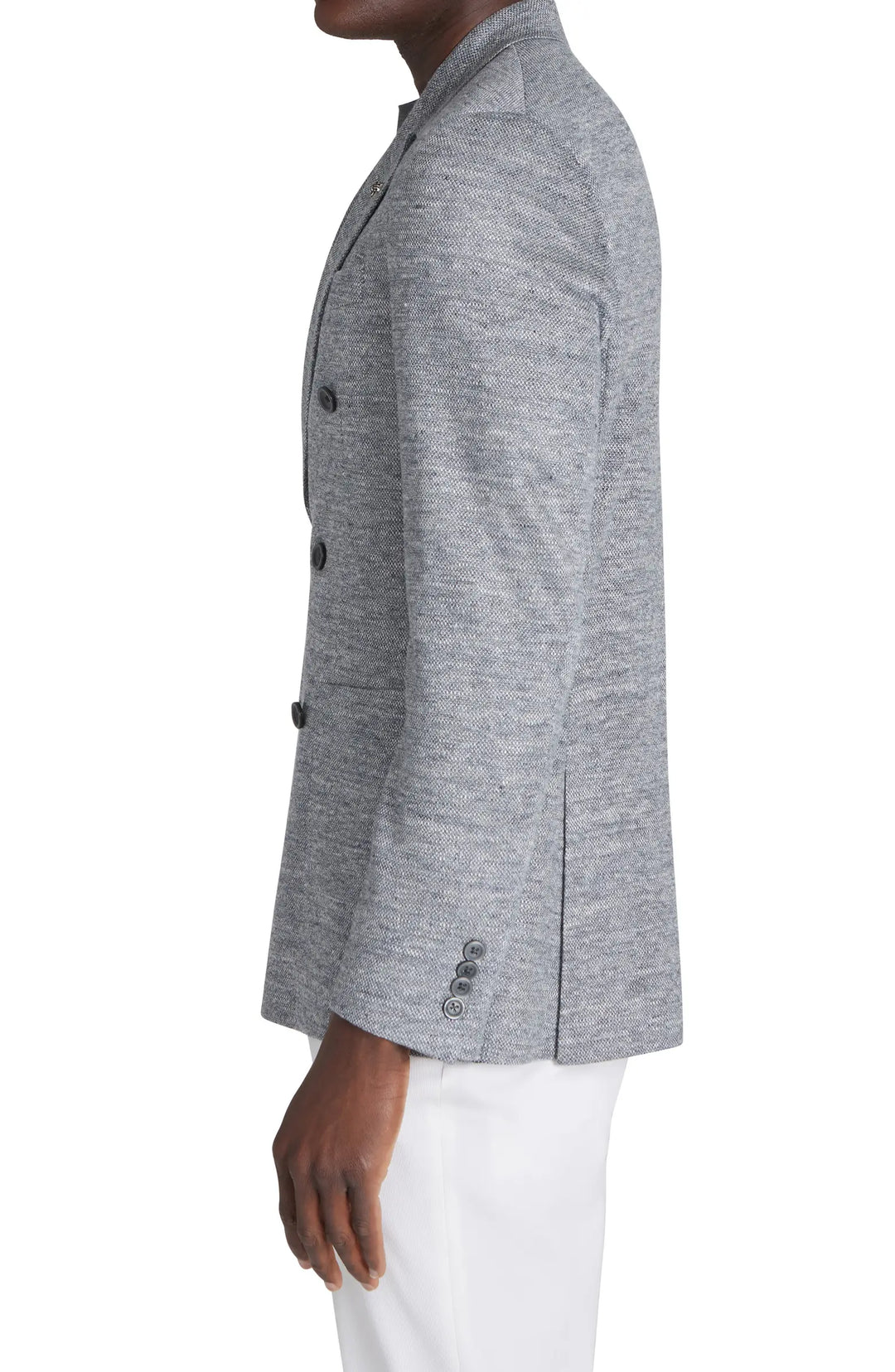 Gray Mouliné Double Breasted Knit Linen Hall Contemporary Fit Blazer - Jack Victor