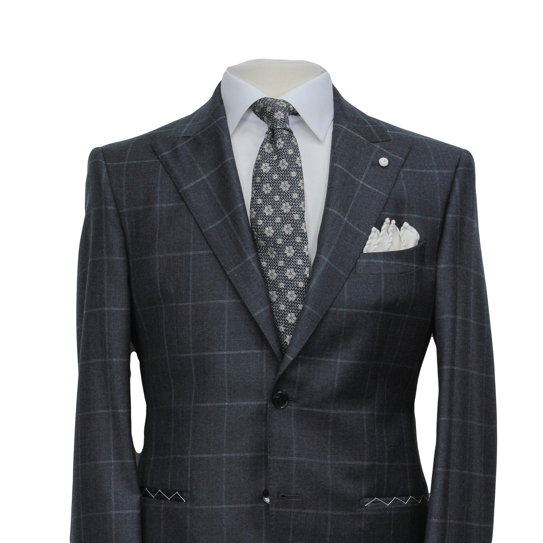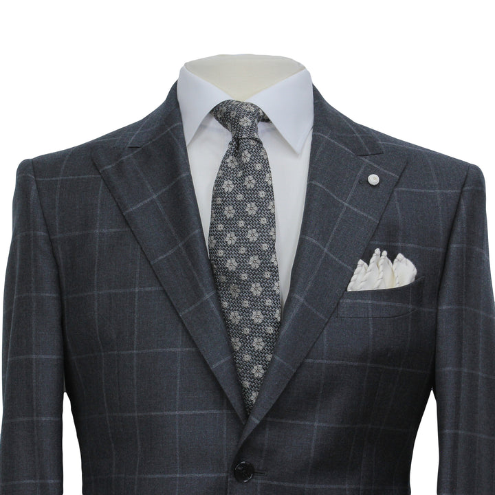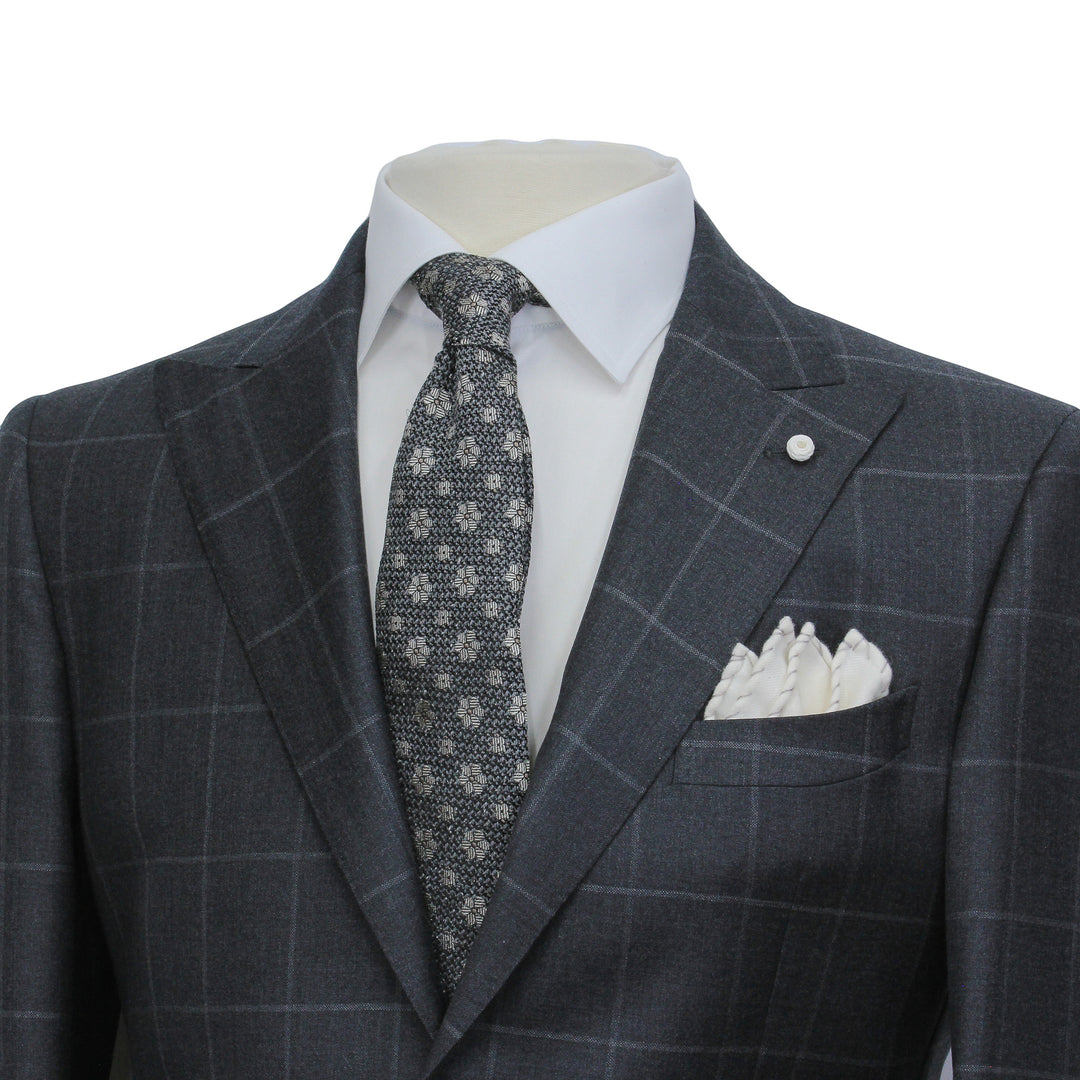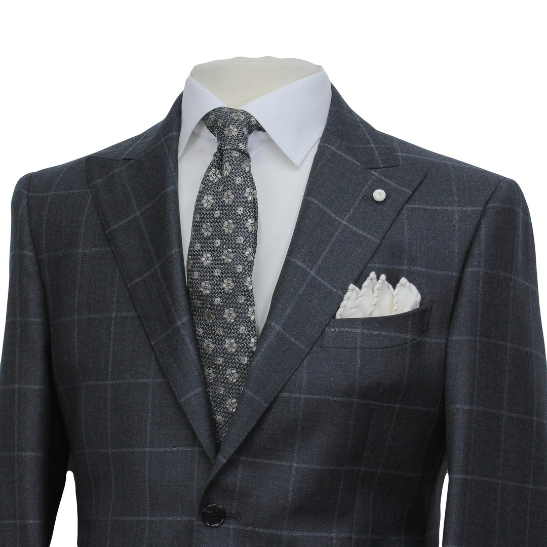Gray Windowpane Wool Mantua Slim Fit Suit Peak Lapel - Luigi Bianchi