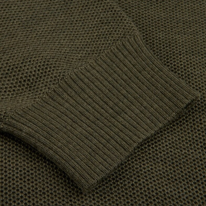 Green Textured Merino Wool Crew Neck Sweater - Stenströms