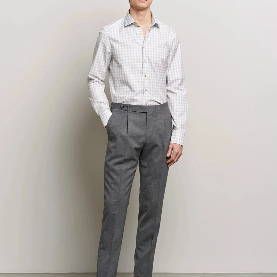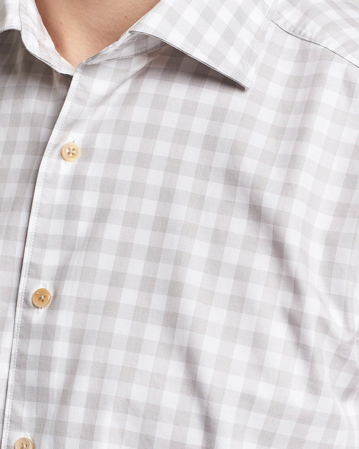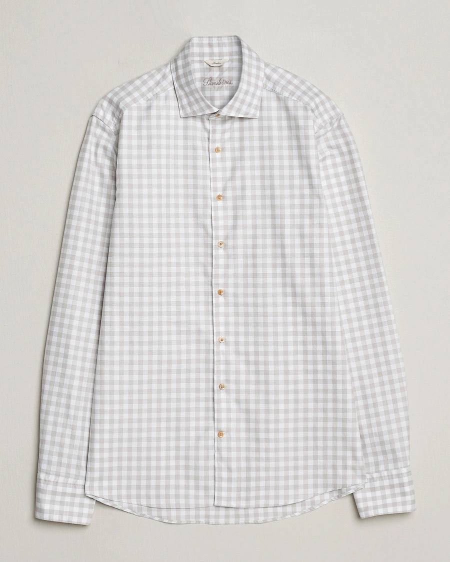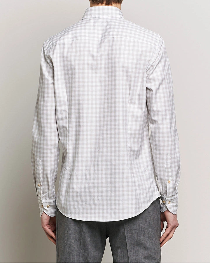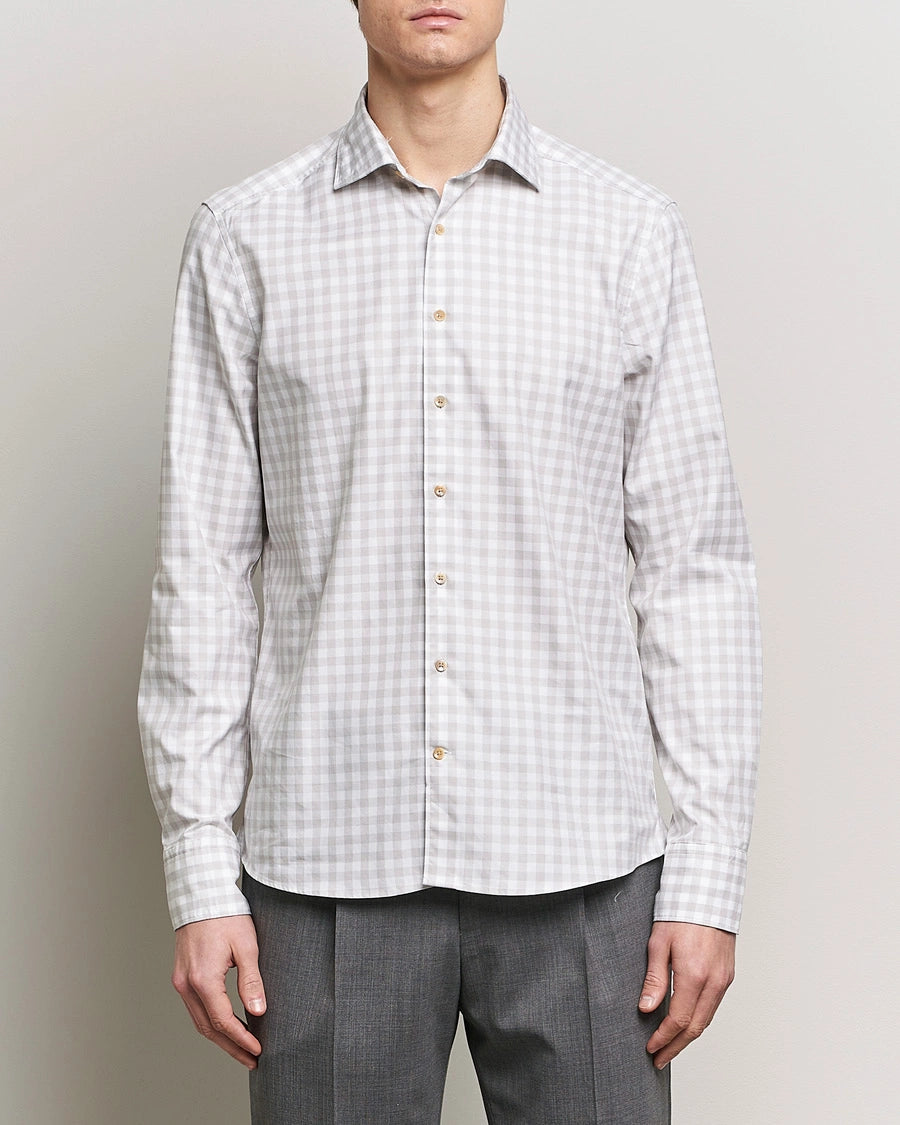 Grey/Beige Gingham Garment Wash Slimline Casual Shirt - Stenströms