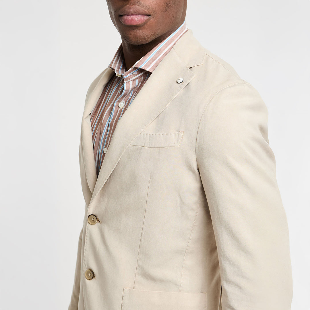 Light Beige Solid Lyocell-Linen-Cotton Unlined Sport Jacket - L.B.M 1911