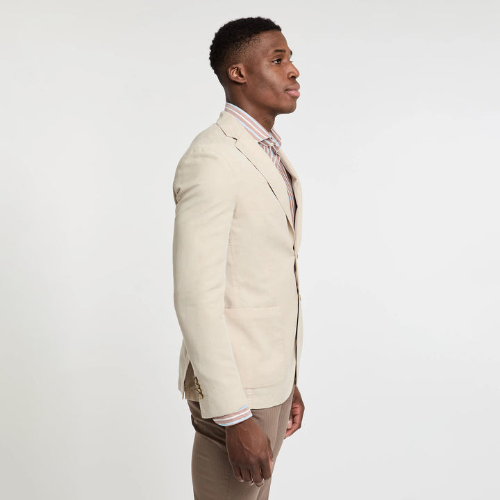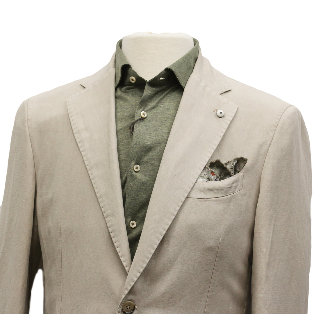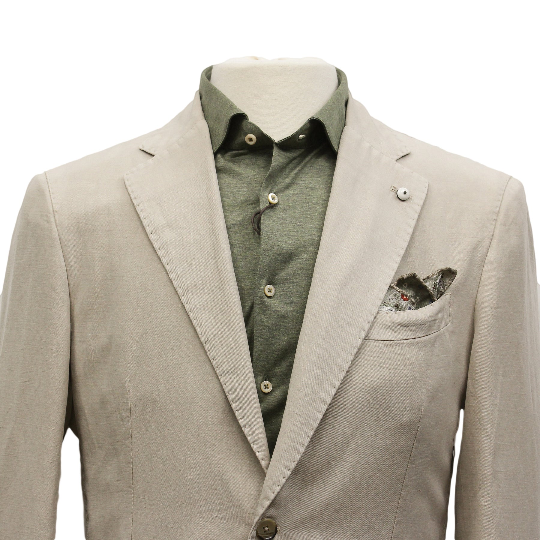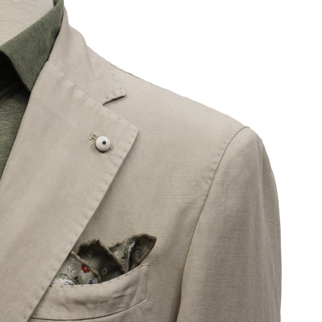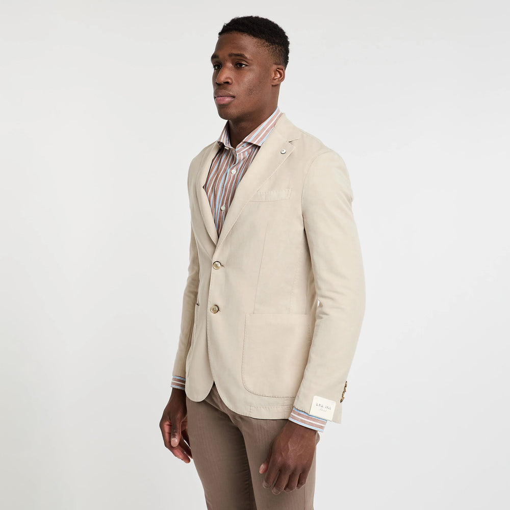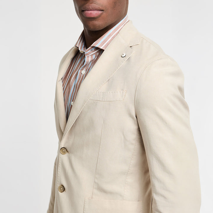 Elevate your spring and summer wardrobe with the Light Beige Lyocell-Flax-Cotton Sport Jacket by LBM 1911. Crafted in Italy, this jacket seamlessly blends style and comfort to create a versatile addition to your collection. Made from a luxurious blend of lyocell, flax (linen), and cotton, this jacket offers both breathability and a luxurious feel. The soft neutral beige tone adds a touch of sophistication to your look while being a versatile option that matches most of the other colours in your current wardrobe. Whether you're dressing down with jeans or five-pocket pants for the office or dressing up for events with a collared shirt or knit, this jacket adapts effortlessly to your style.