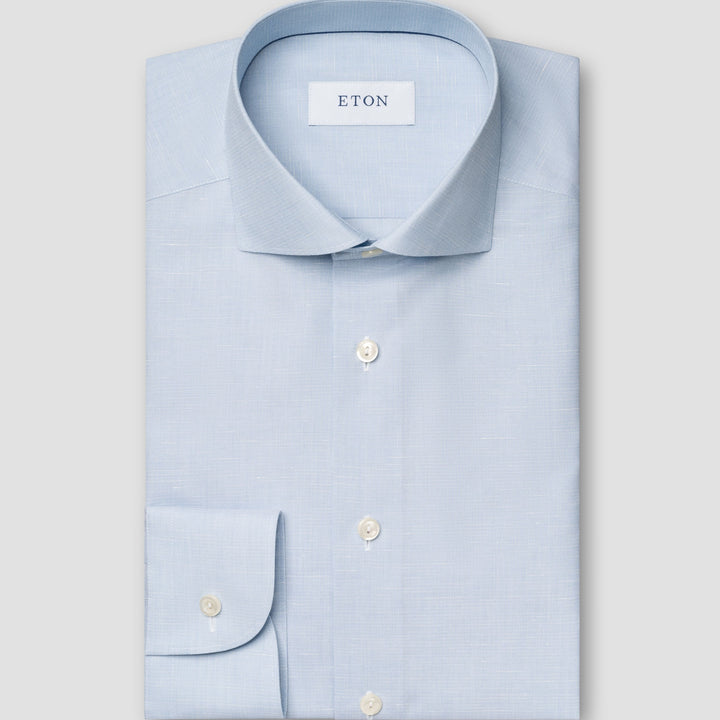 The cotton-linen fabric is a luxurious addition to the Eton shirt range, epitomizing elegance and refinement.