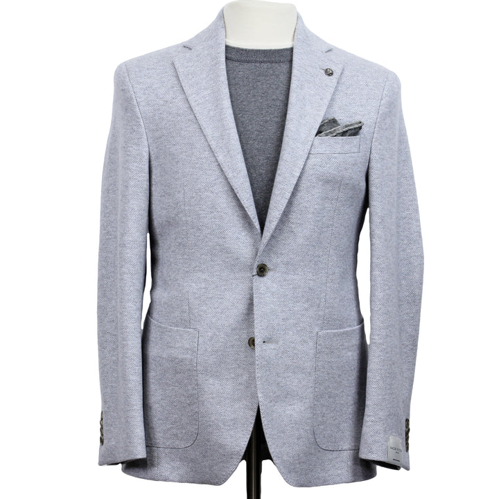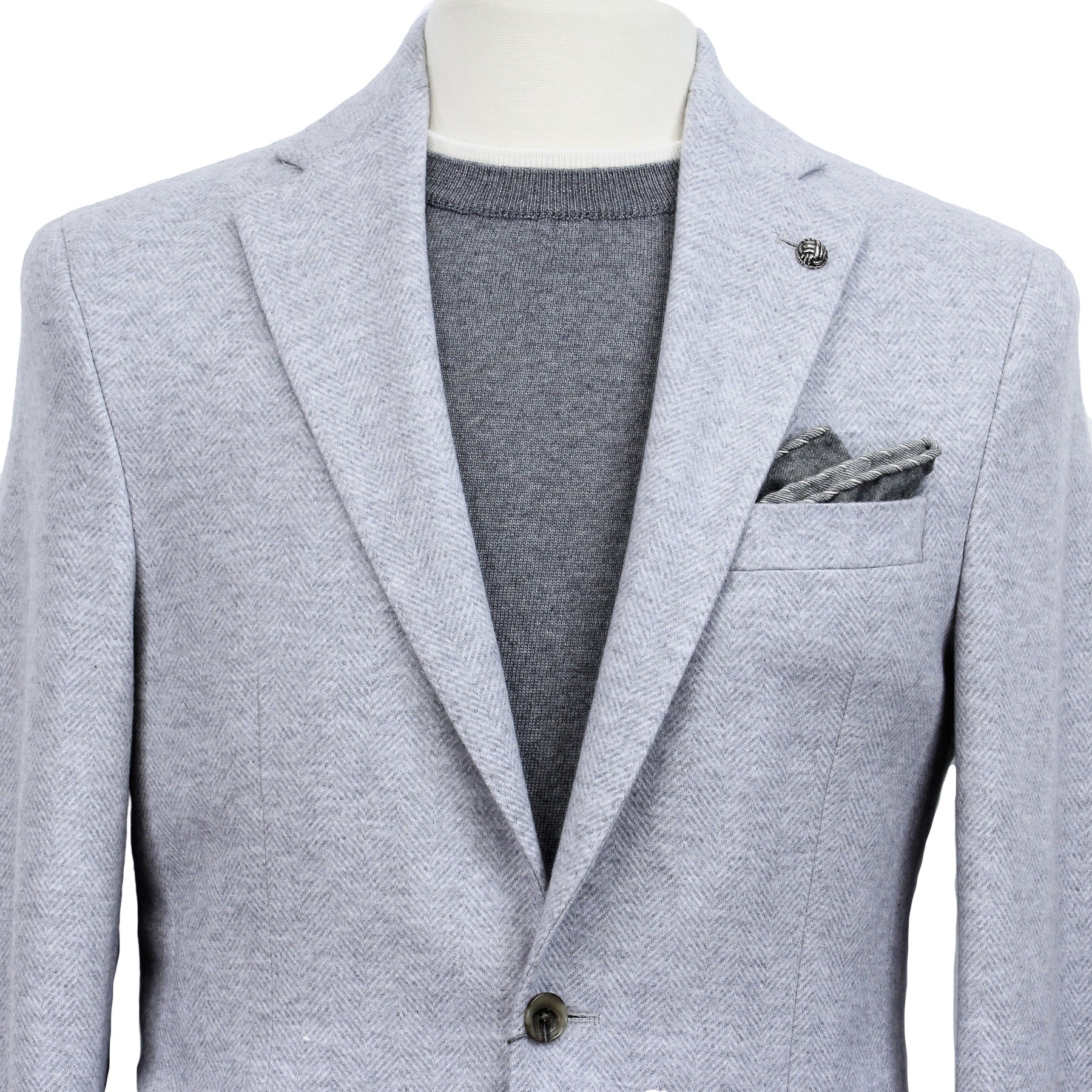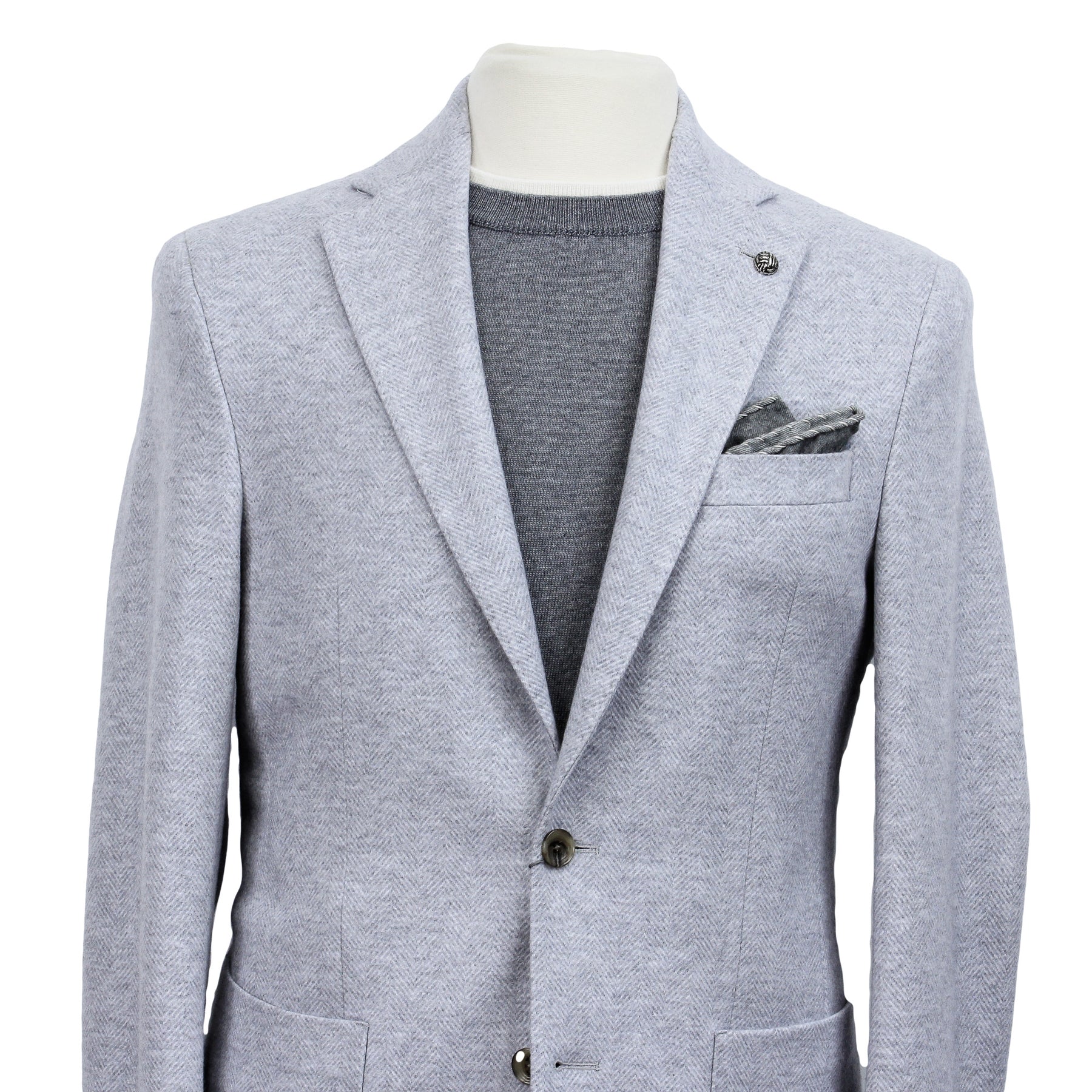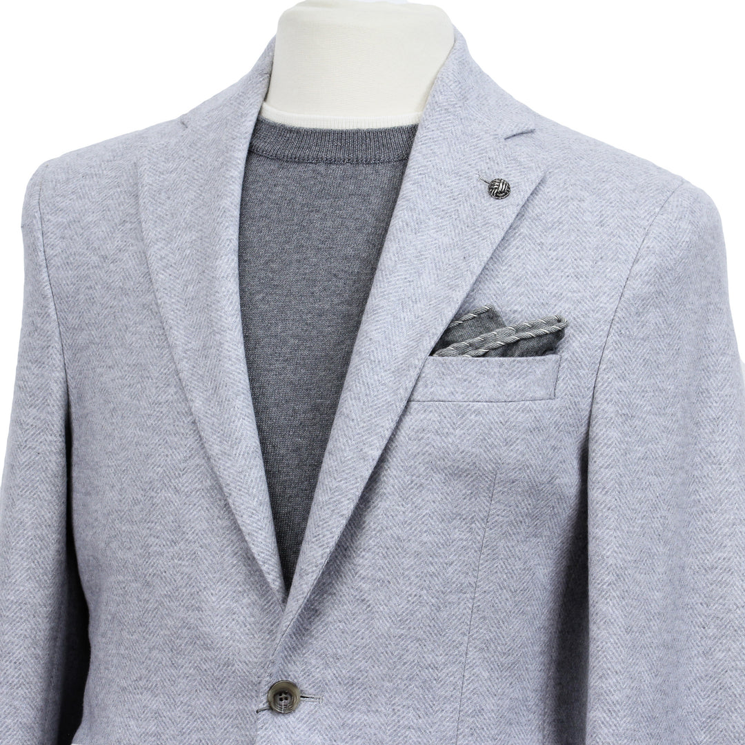 Light Gray Herringbone Wool-Cotton Hampton Contemporary Fit Jacket - Jack Victor