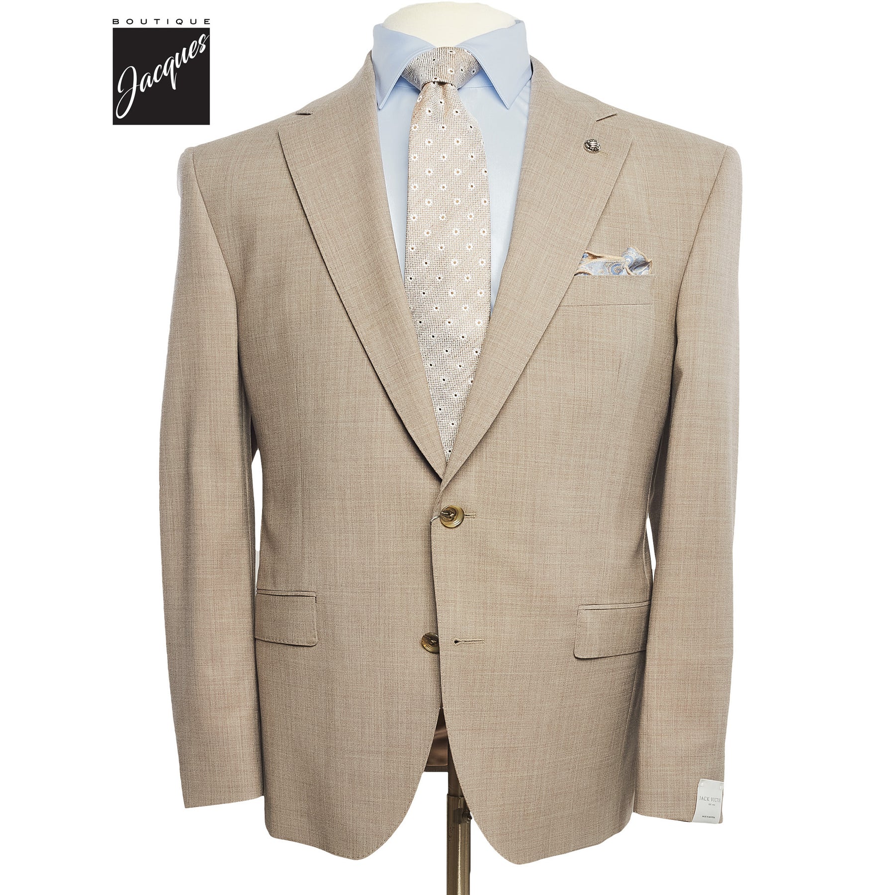 Experience the finest in men's fashion with the Jack Victor Light Taupe Wool Suit. Its impeccable design, superior fabric, and stylish pattern will make you look and feel like a true gentleman. Invest in a suit that exudes confidence, sophistication, and class, while showcasing the exceptional craftsmanship of Montreal.