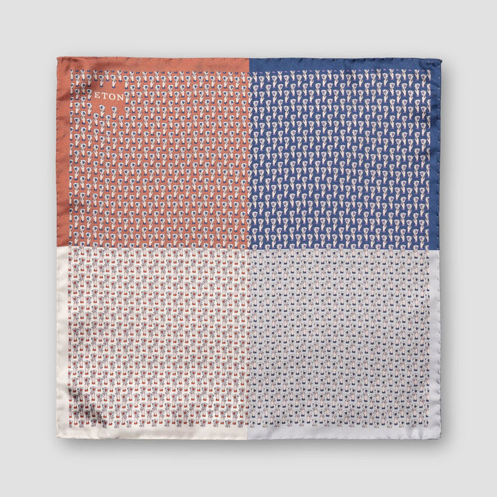 A stylish pocket square in 100% silk with a smart playing card pattern printed on our Oxford silk weave with rich texture and elegant shape when folded. Featuring four different coloured sides, this is sure to match well with any suit or jacket. Made in Italy.
