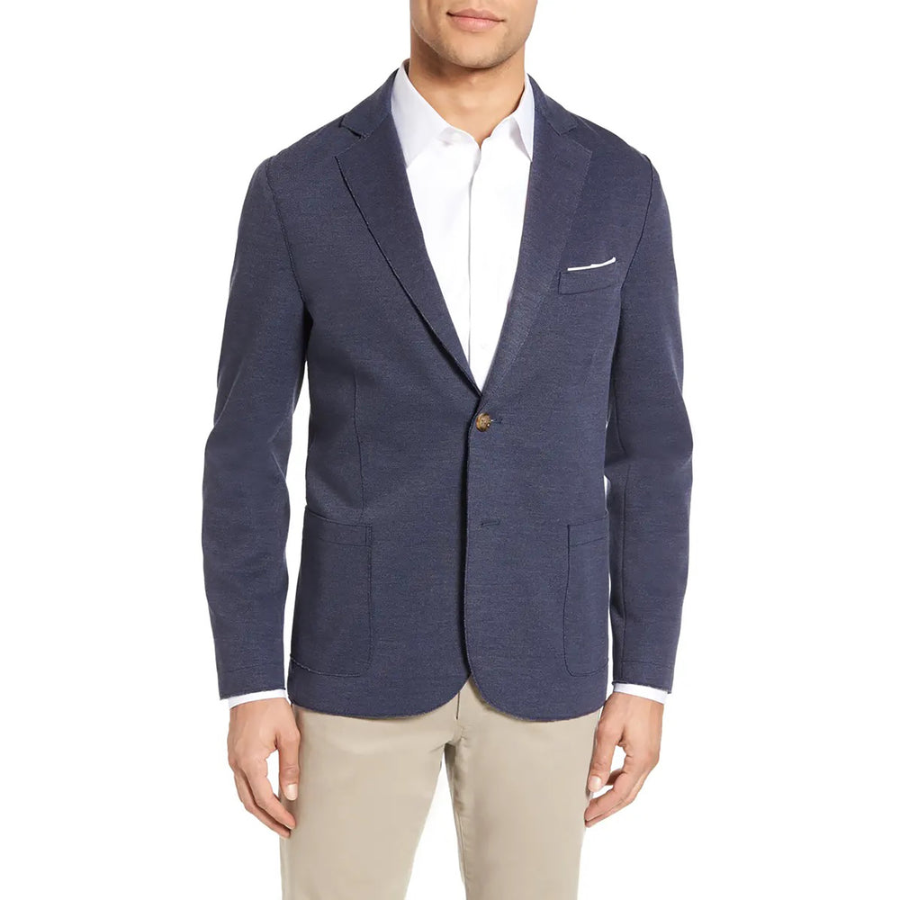 Pair this versatile soft jacket with a crisp white shirt and la desert boot for a polished yet relaxed look. For a more casual ensemble, opt for a sport shirt or a t-shirt and sneakers. The natural construction and the soft navy blue colour makes this piece a versatile wardrobe staple that can be dressed up or down effortlessly.