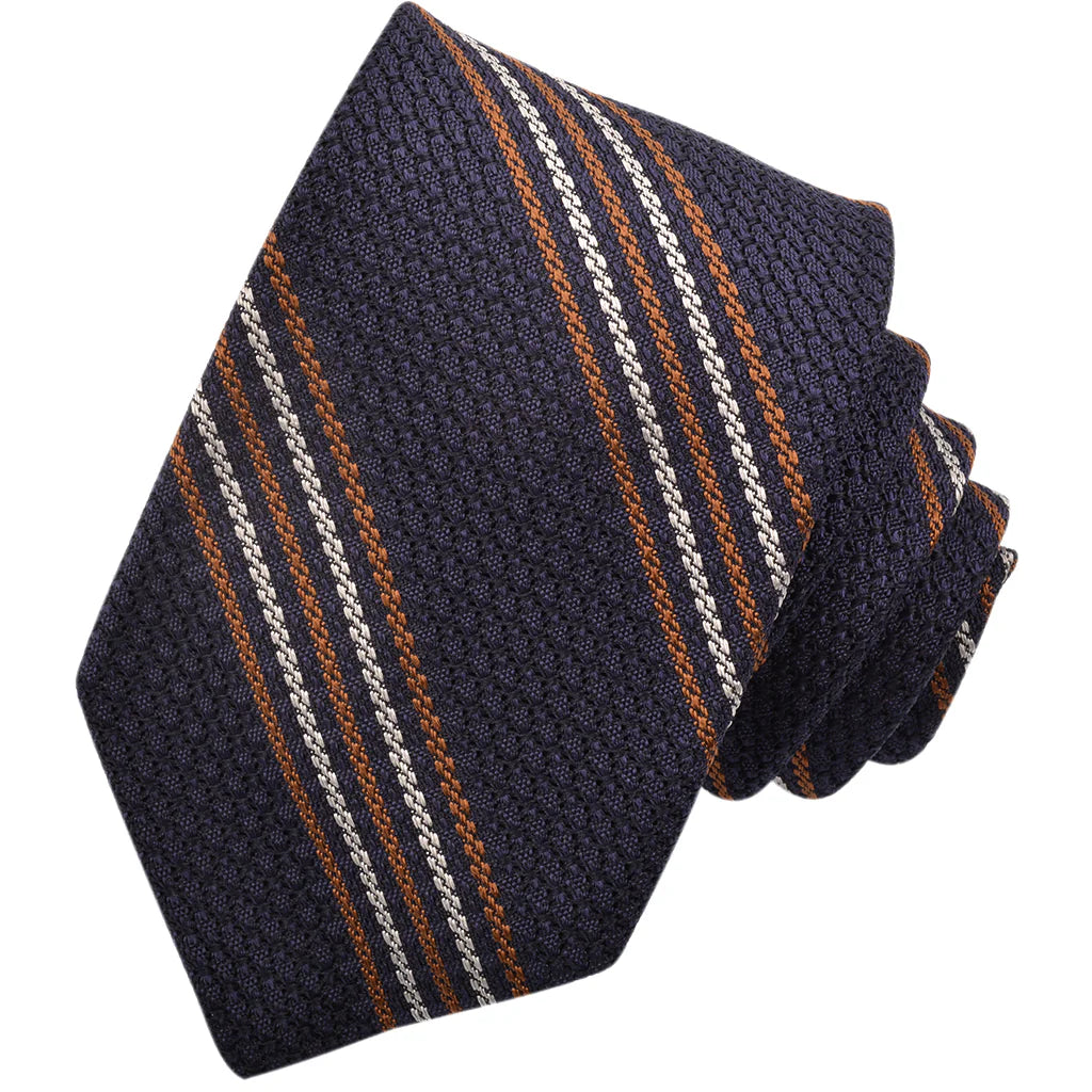 A luxurious handmade tie with a striped pattern crafted from 100% pure silk in a Garza fine Grenadine fabric with rich texture woven according to tradition in Como, Italy.