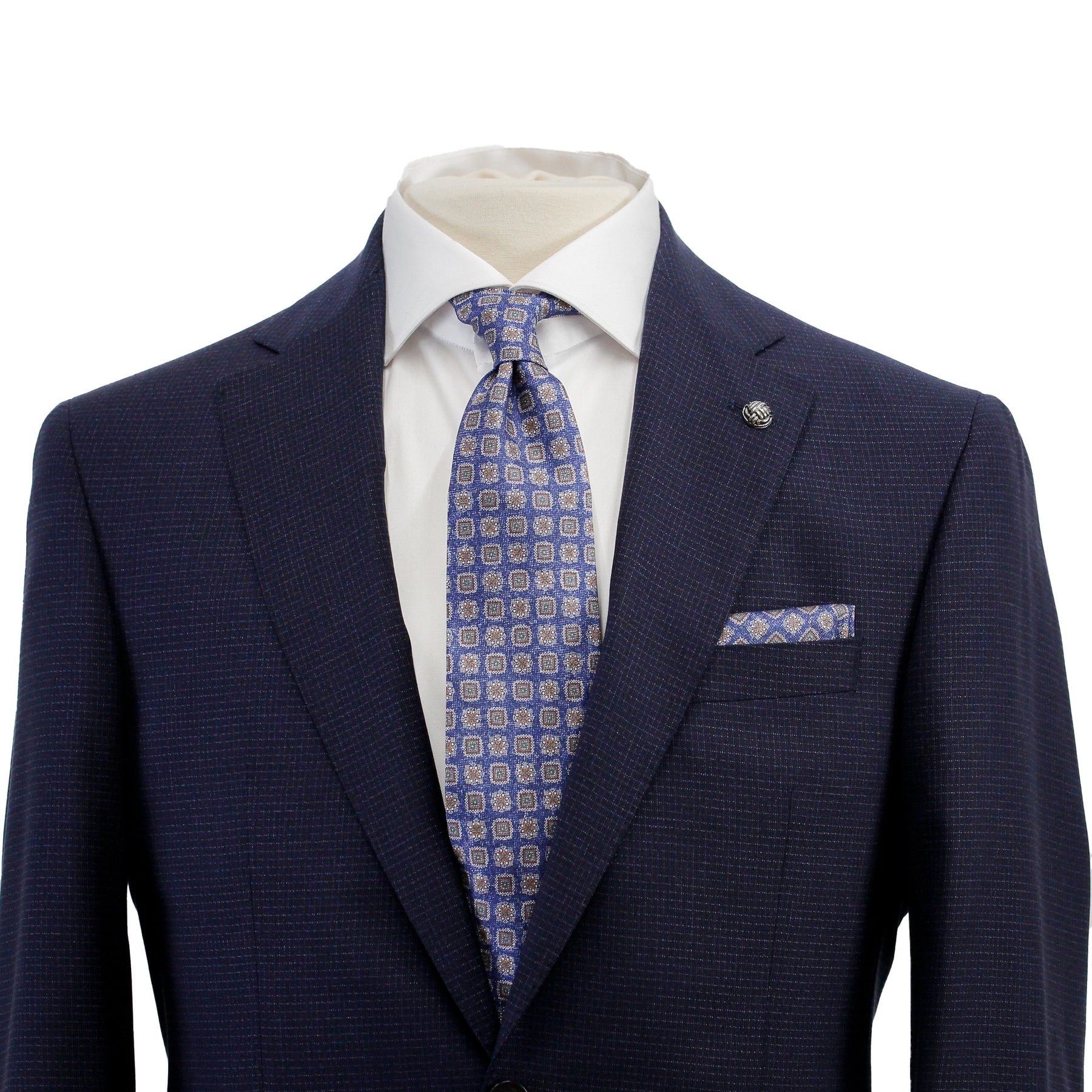 Navy Micro-Check Esprit Modern Fit Lyocell-Wool Suit - Jack Victor