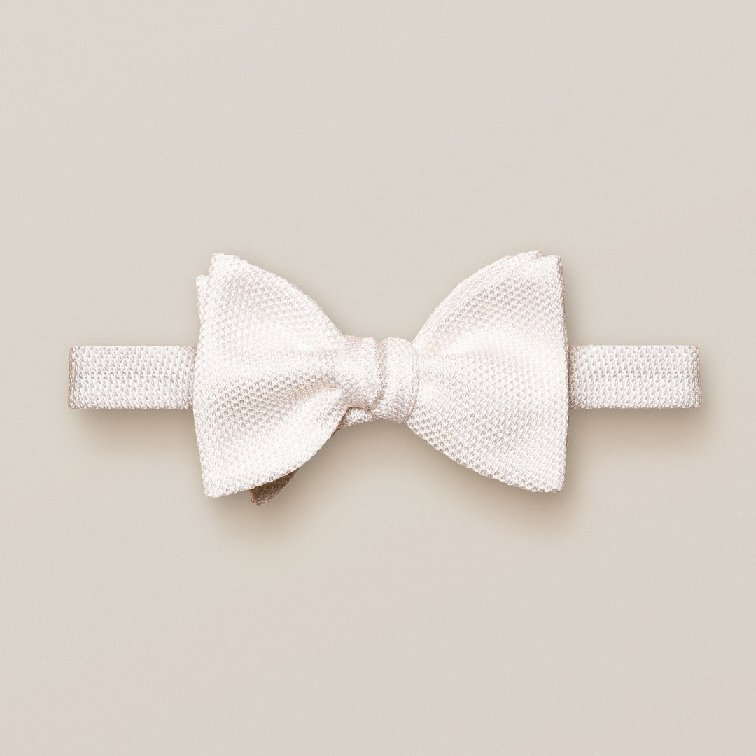 This exquisite hand-made Grenadine bow tie is made from Garza Fina, a fabric woven on traditional wooden looms in Como, Italy. The bright spring colours of this ready-tied bow tie are enhanced by the beautiful texture of the fabric that is manufactured by some of Italy’s oldest silk weavers.
