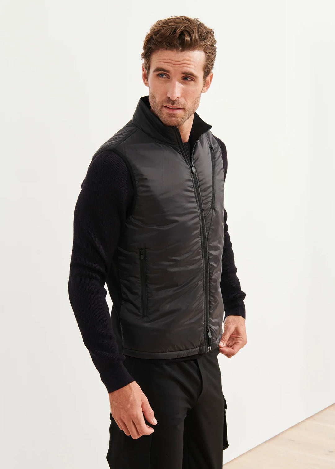 This vest is made from a four-way stretch jersey. It is cut in a slim silhouette, making it an ideal layering piece. Pair it with the long sleeve stretch crewneck t-shirt.