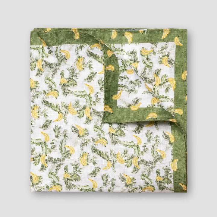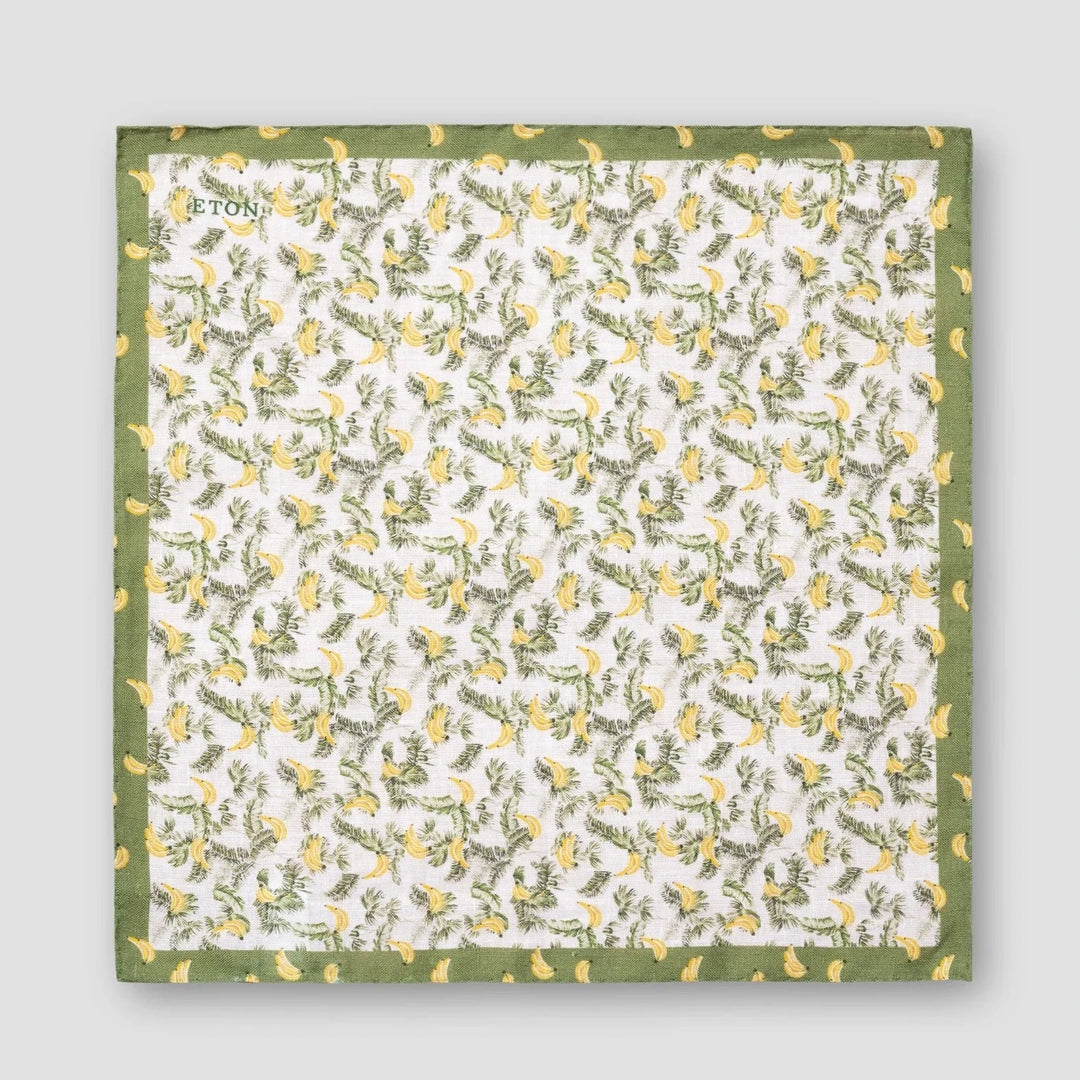 White & Green Banana Motif Linen Pocket Square - ETON