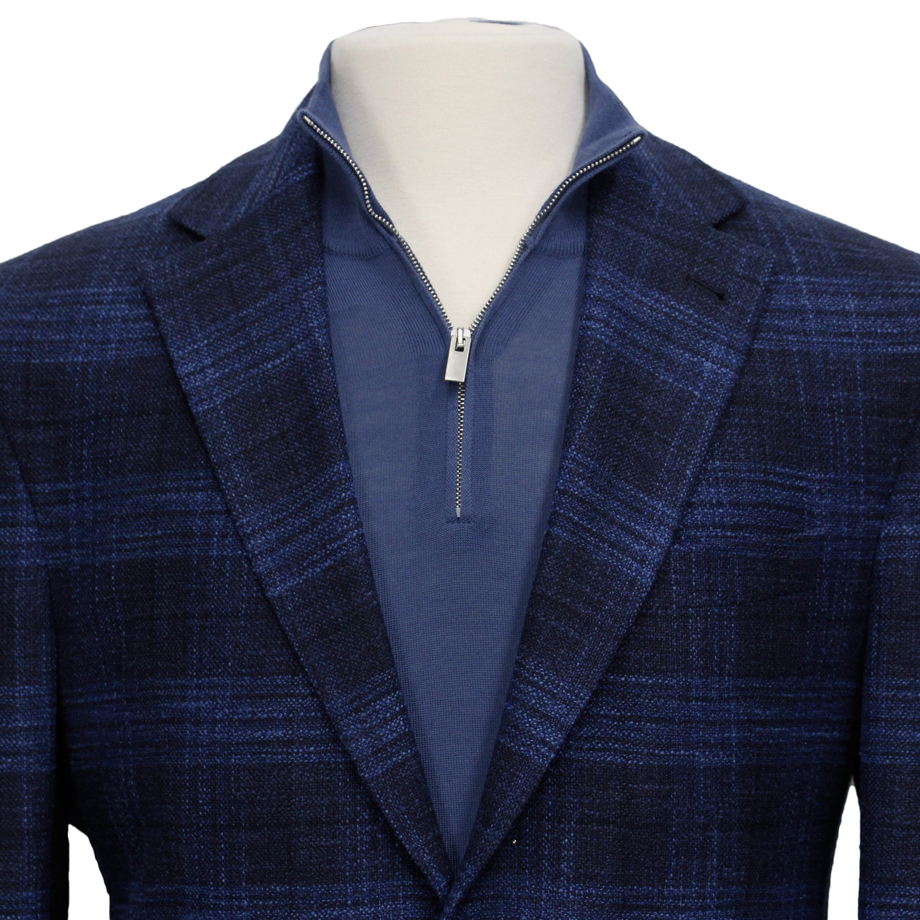 Blue Tonal Plaid Dallas Contemporary Fit Wool-Silk-Cotton Sport Jacket - Jack Victor