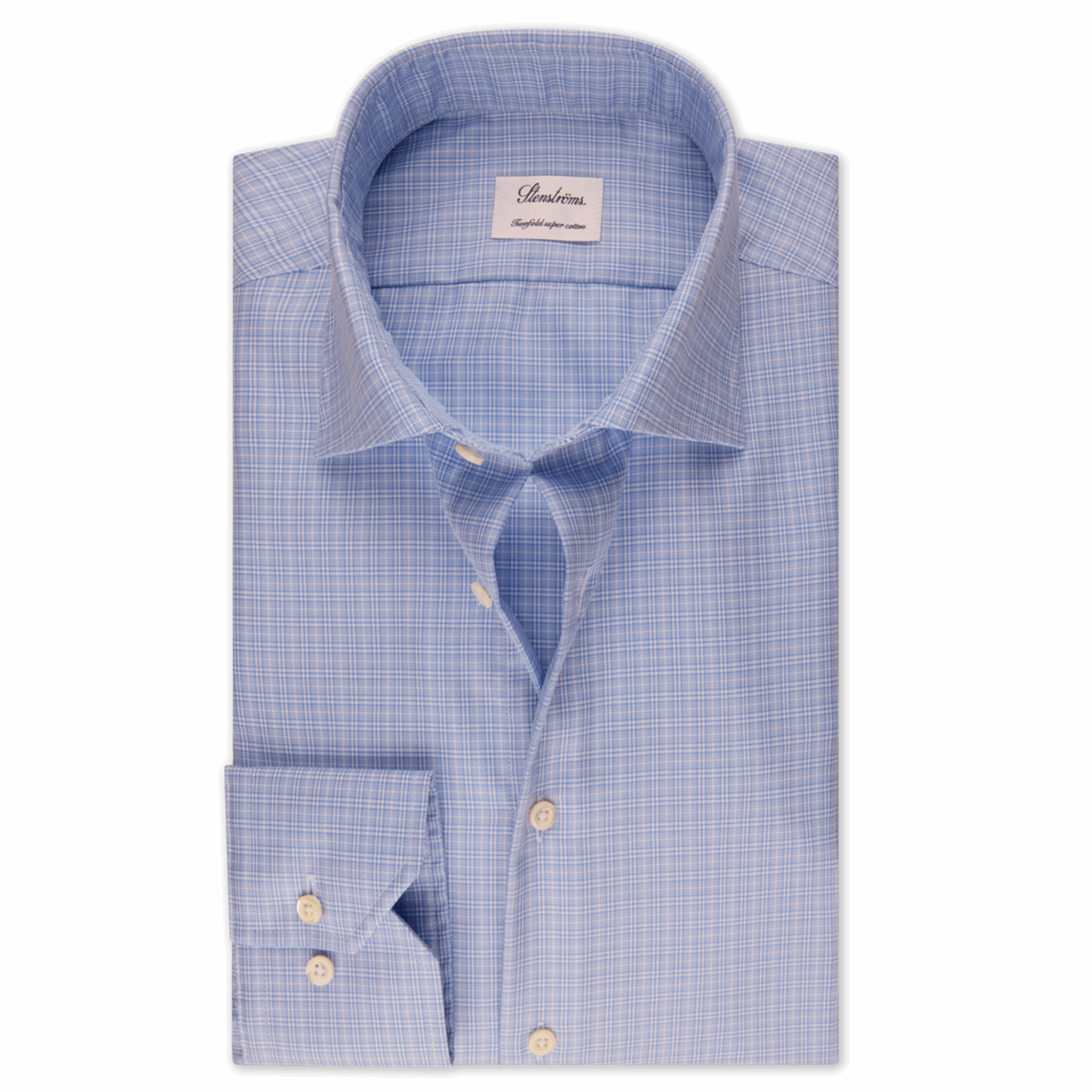 Blue Check Twill Fitted Body Shirt - Stenströms
