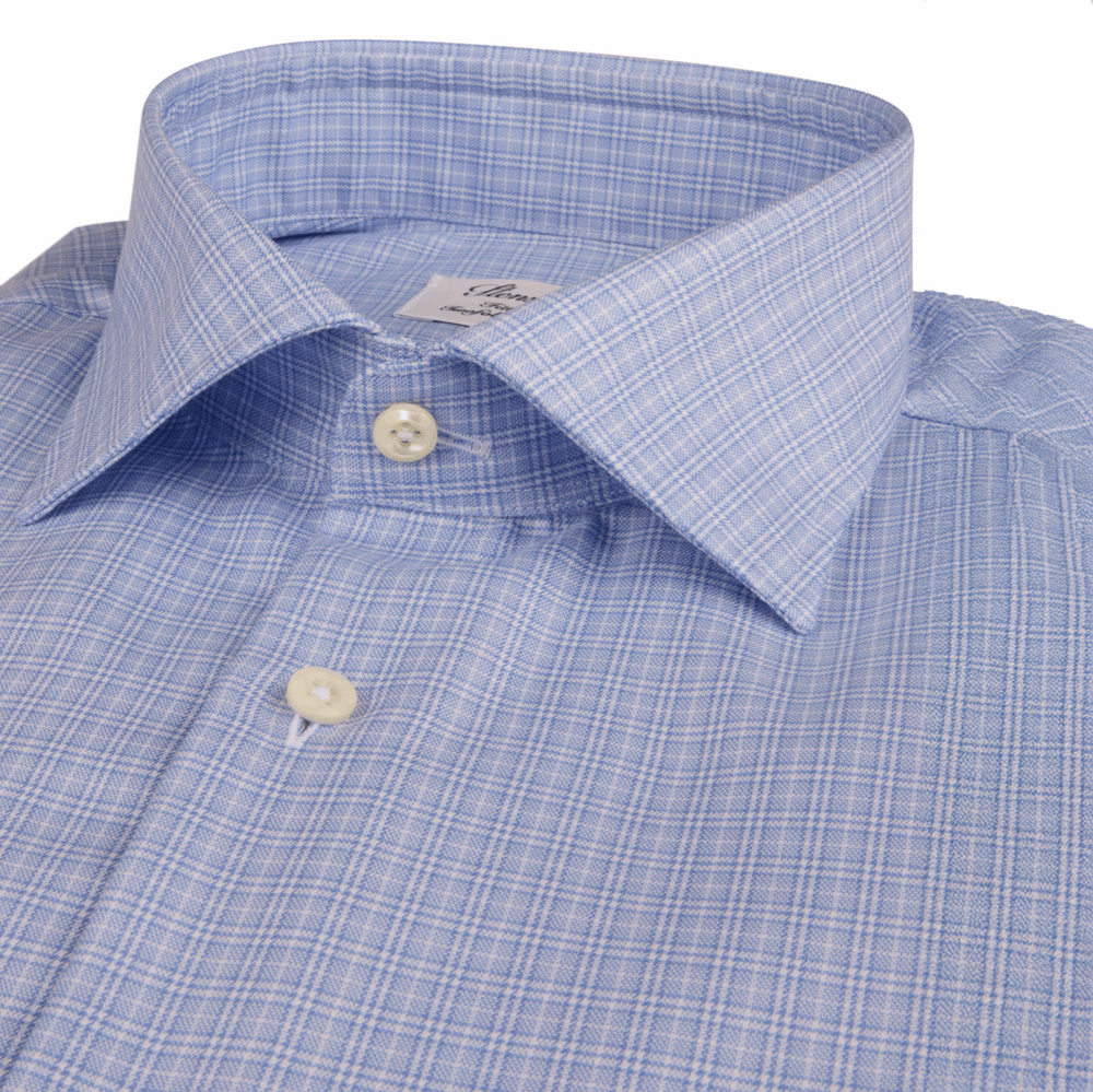 This twill shirt is made of twofold cotton. The shirt has a checked pattern and is detailed with single cuffs and a cut-away collar.