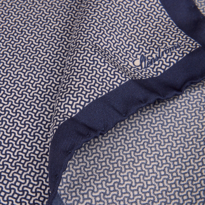 Blue Geometric Patterned Silk Hankie - Stenströms