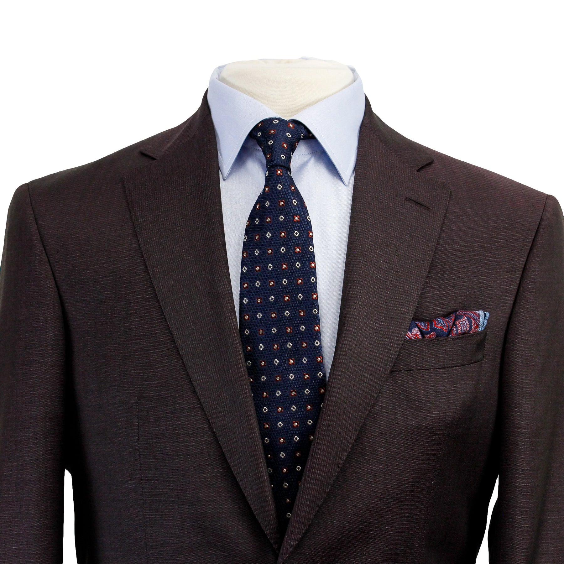 Made from 100% Super 120s wool sourced from Italy, this suit boasts the finest quality and craftsmanship. Its slim sartorial fit, combined with a soft-shoulder construction, offers a modern silhouette that complements your style with a touch of refinement. The suit is adorned with rich brown horn buttons, enhancing its luxurious appeal.