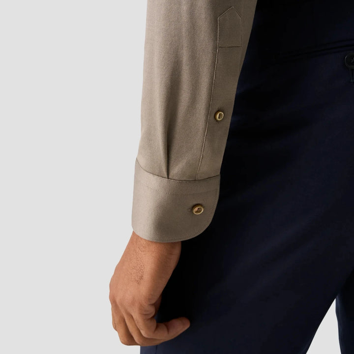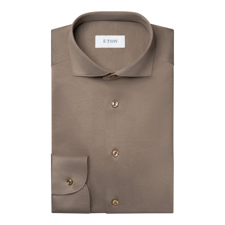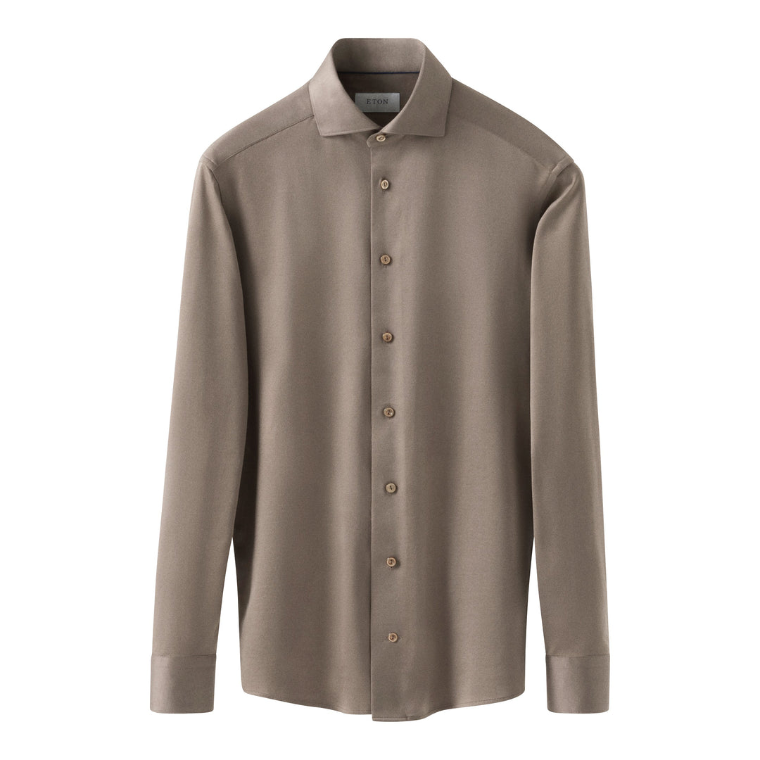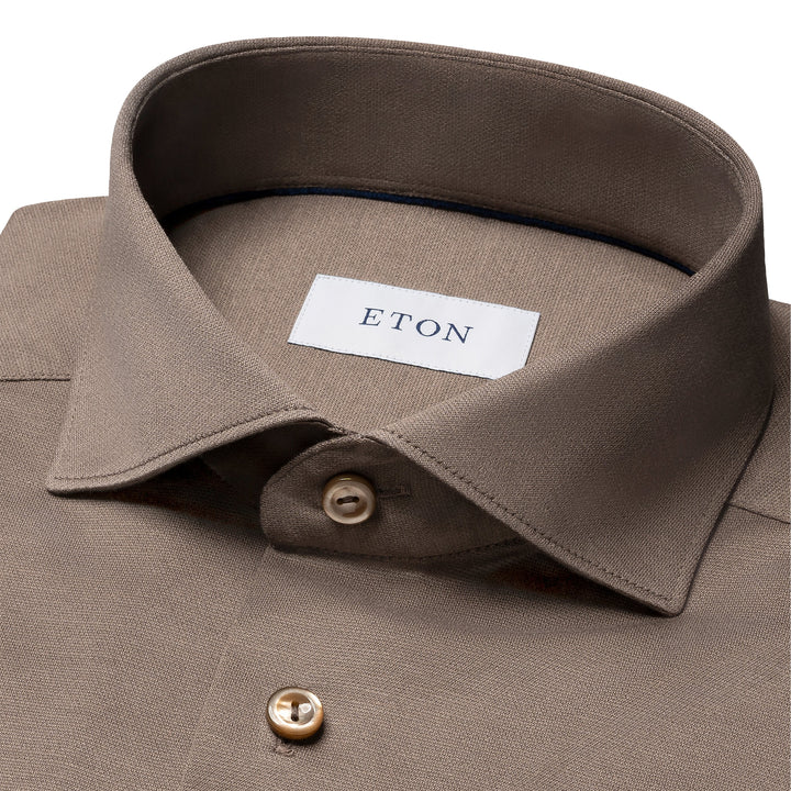The fabric was knitted by Besani, in Lombardy, Northern Italy and features a solid pattern. Updated with a more structured interlining, this shirt is available in a slim fit. This brown ETON casual shirt boasts a silky smooth texture and exceptional breathability. The long-staple cotton fibres ensure maximum durability and resilience, guaranteeing that your shirt will maintain its pristine appearance and comfortable feel wear after wear.