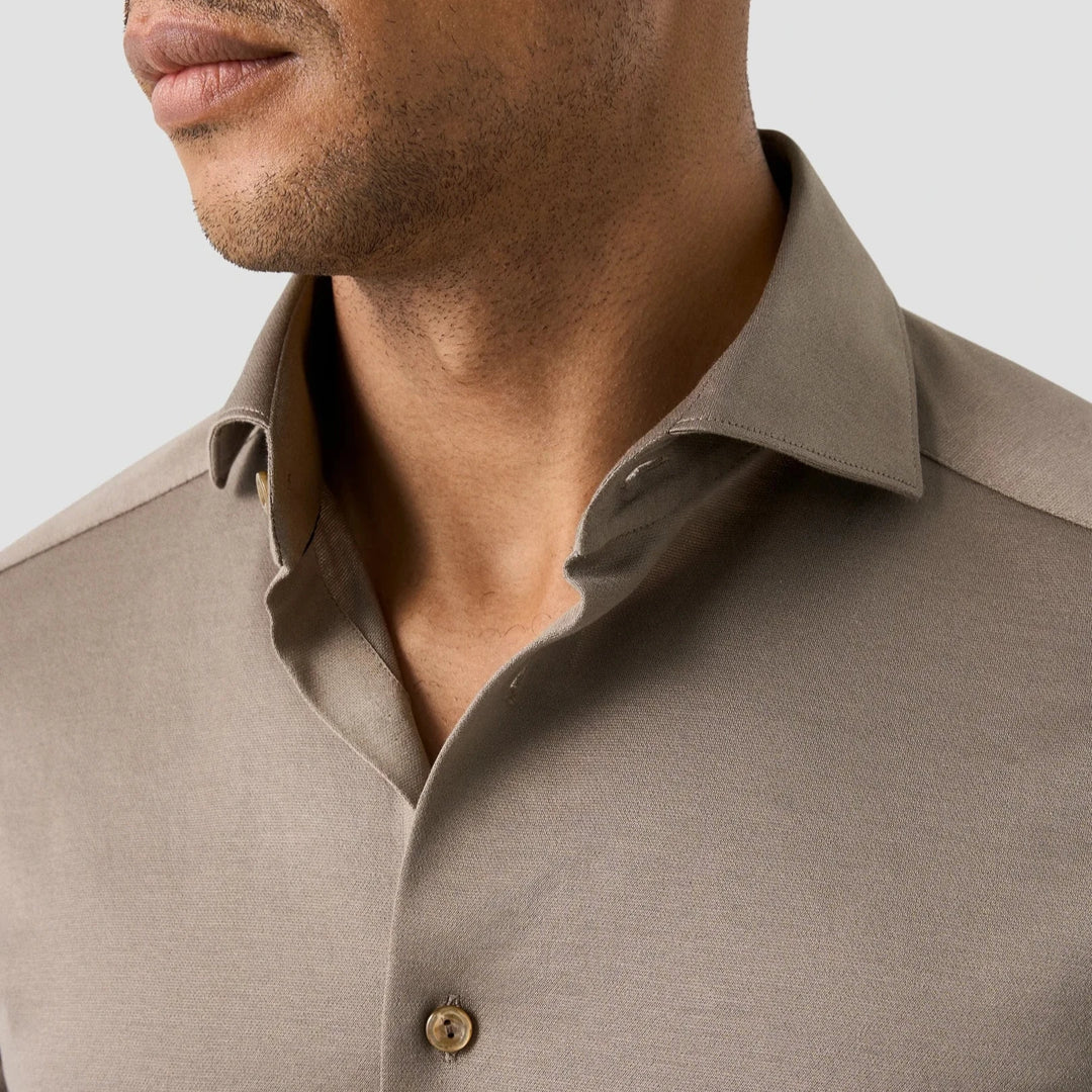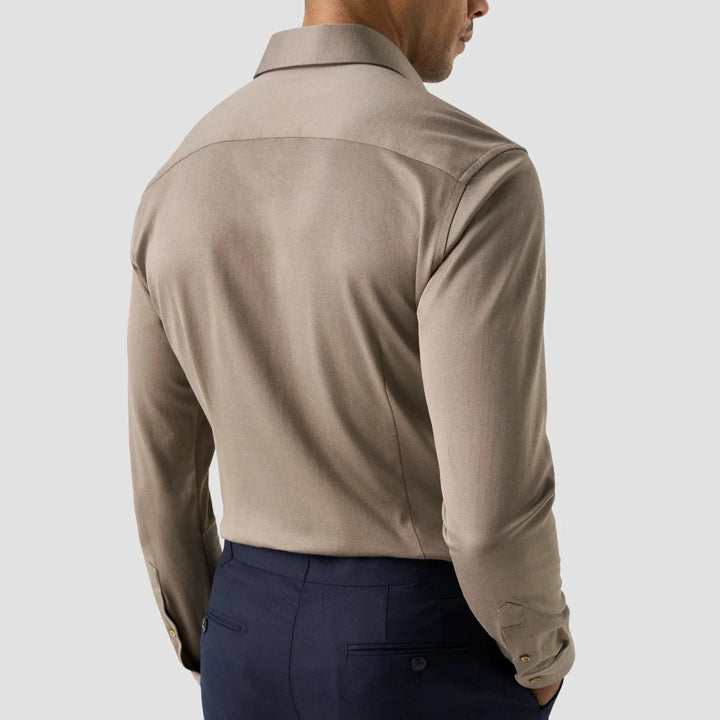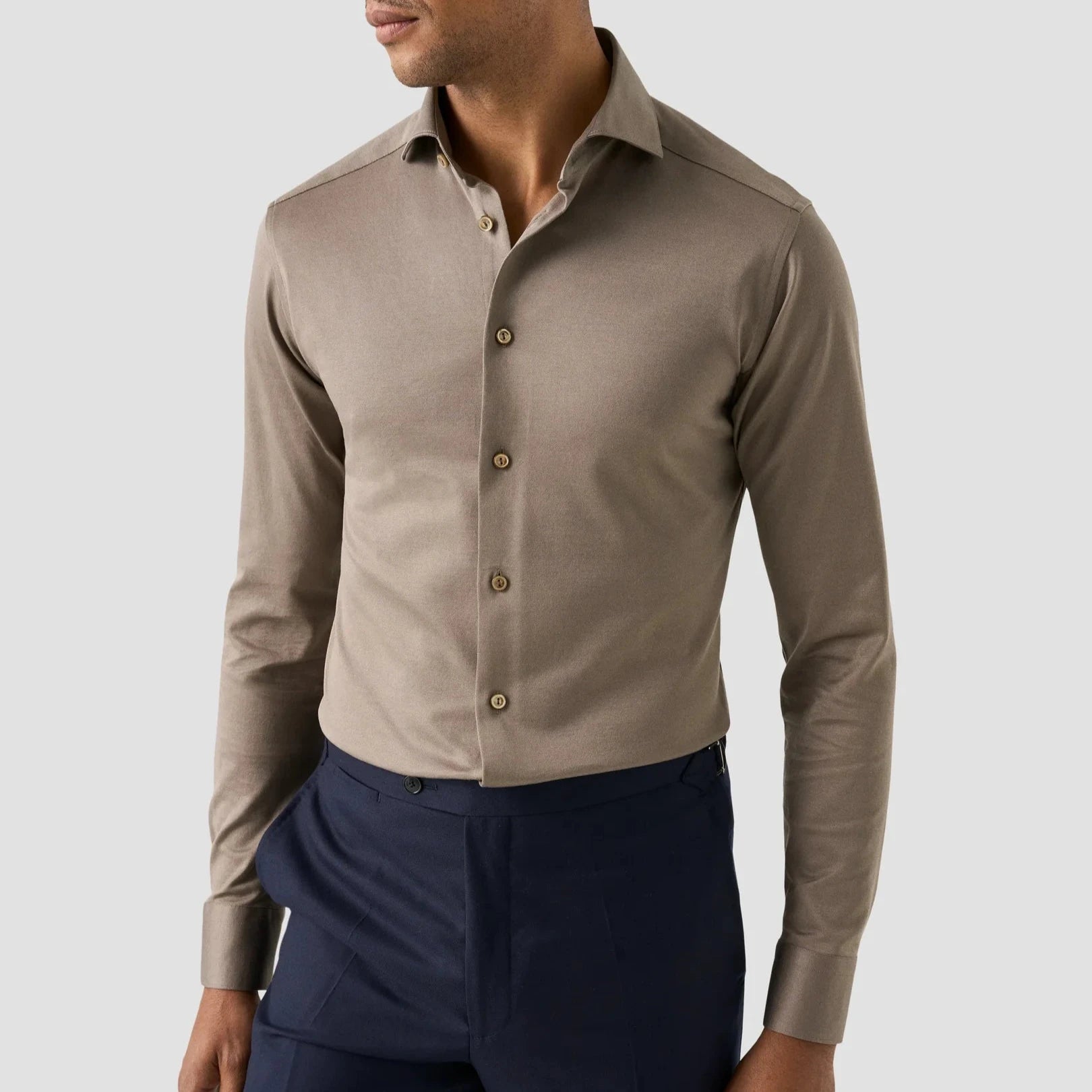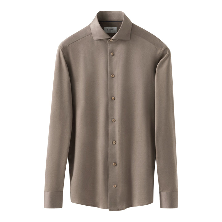 Elevate your wardrobe with our sophisticated ETON Brown Slim Fit Casual Shirt, crafted from luxurious Filo di Scozia cotton in a timeless solid pattern. This premium-quality Knit Shirt is designed to offer unparalleled comfort, style, and durability, making it the perfect choice for any discerning gentleman.