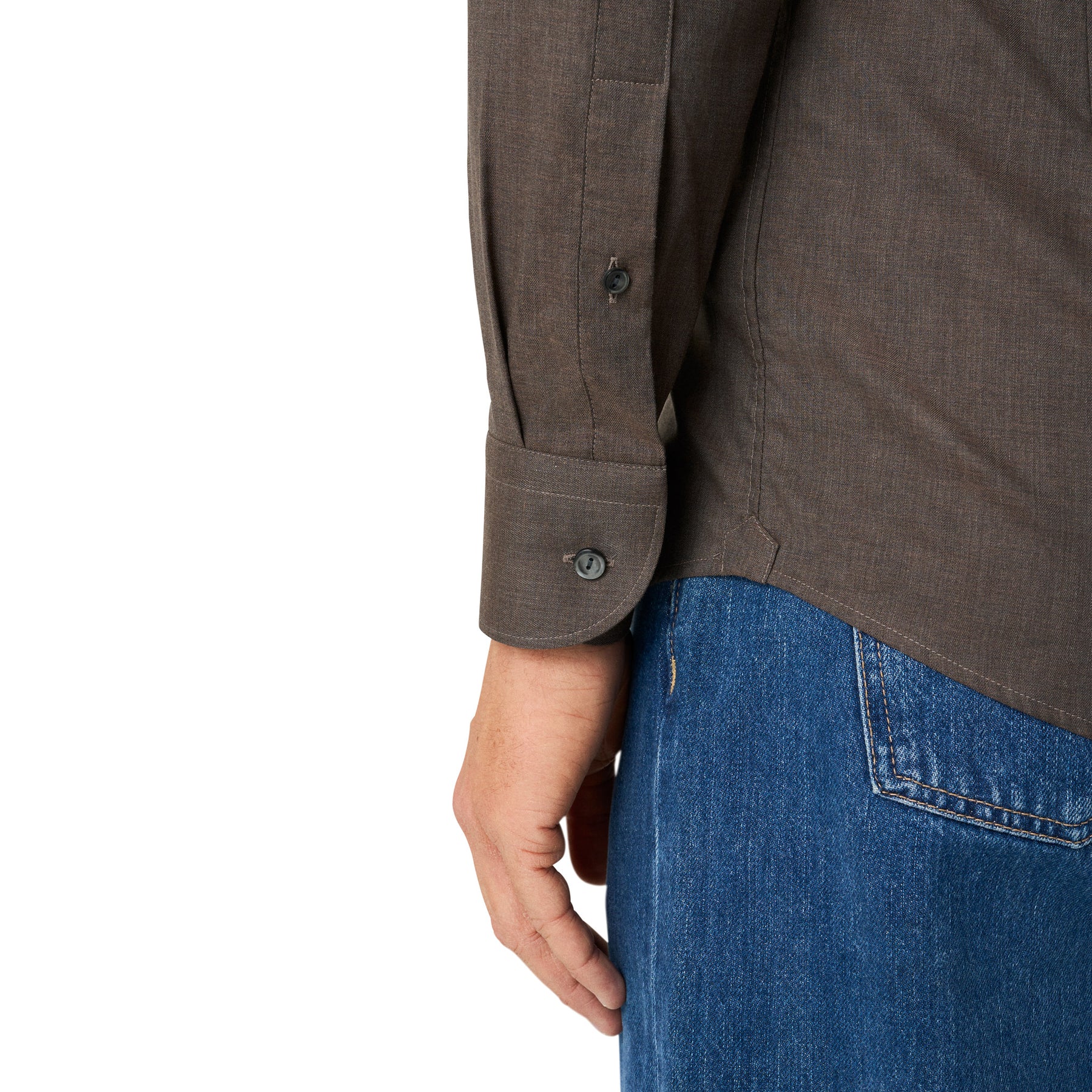 Timeless Style The ETON dark brown semi-solid herringbone shirt offers a timeless, versatile style that effortlessly transitions from the boardroom to a night on the town. The subtle pattern and chocolate hue make it the perfect complement to your favourite suit, blazer, or pair of jeans.