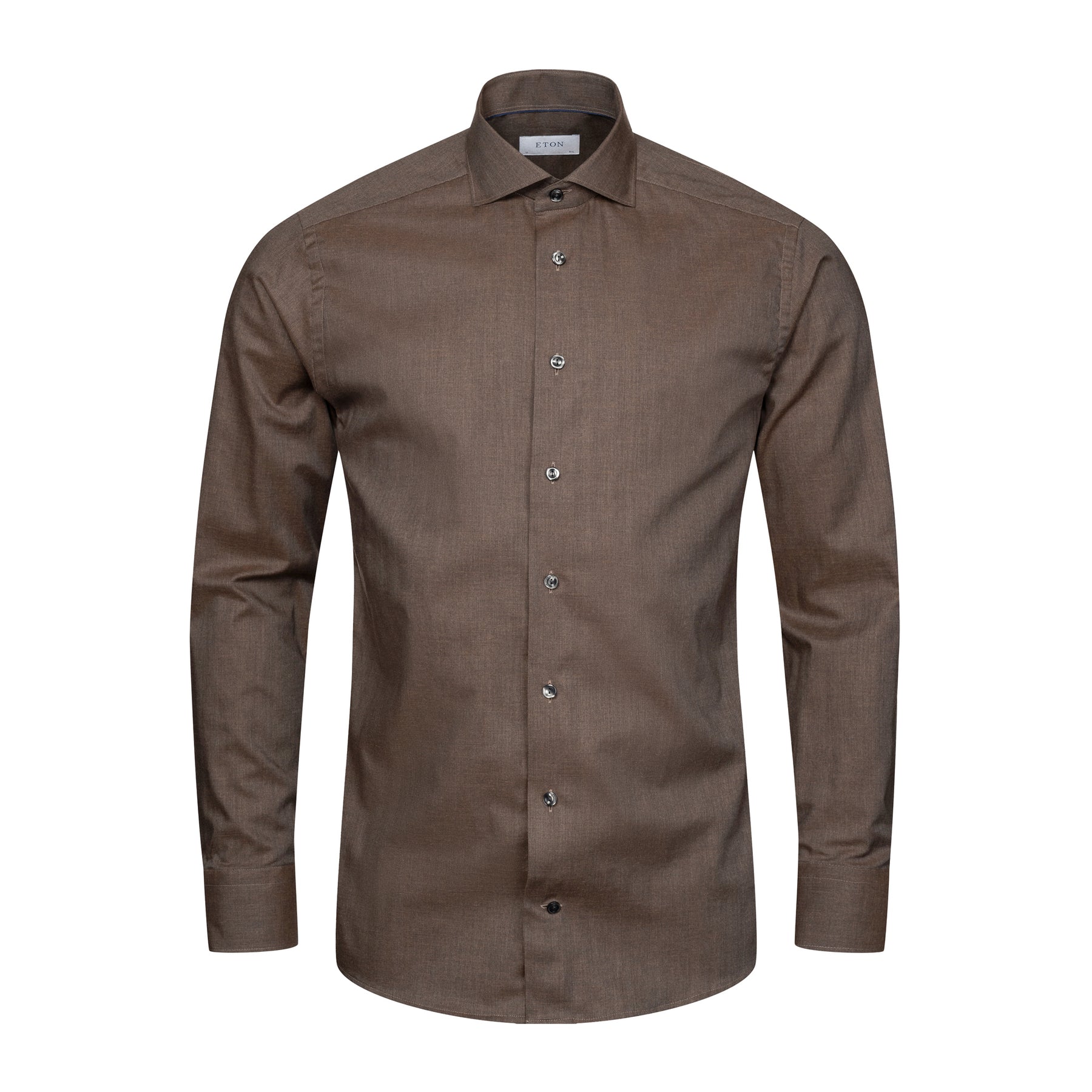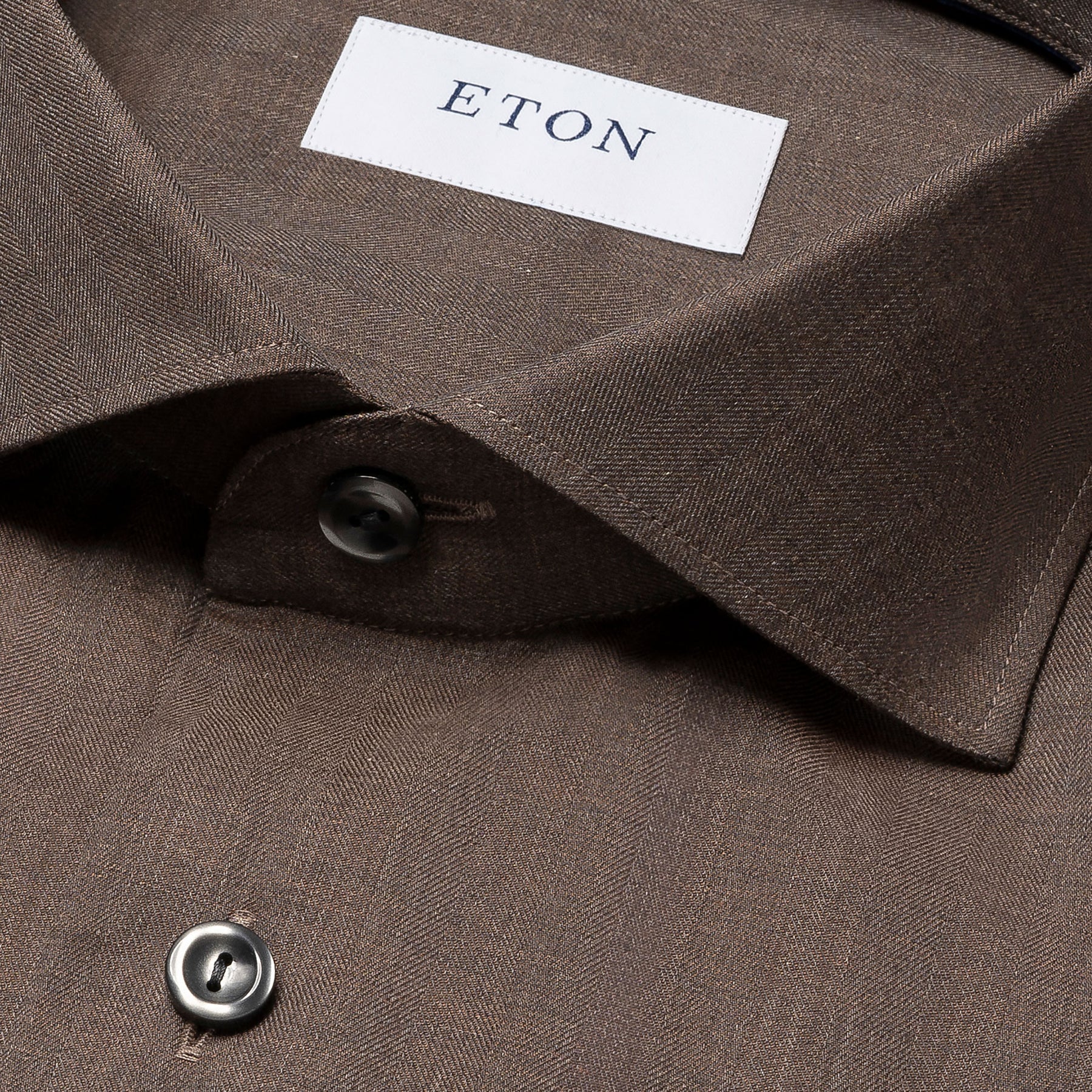 Dark Brown Herringbone Light Weight Flannel Slim Fit Shirt - ETON