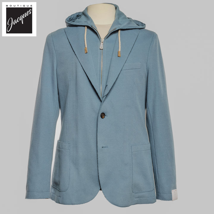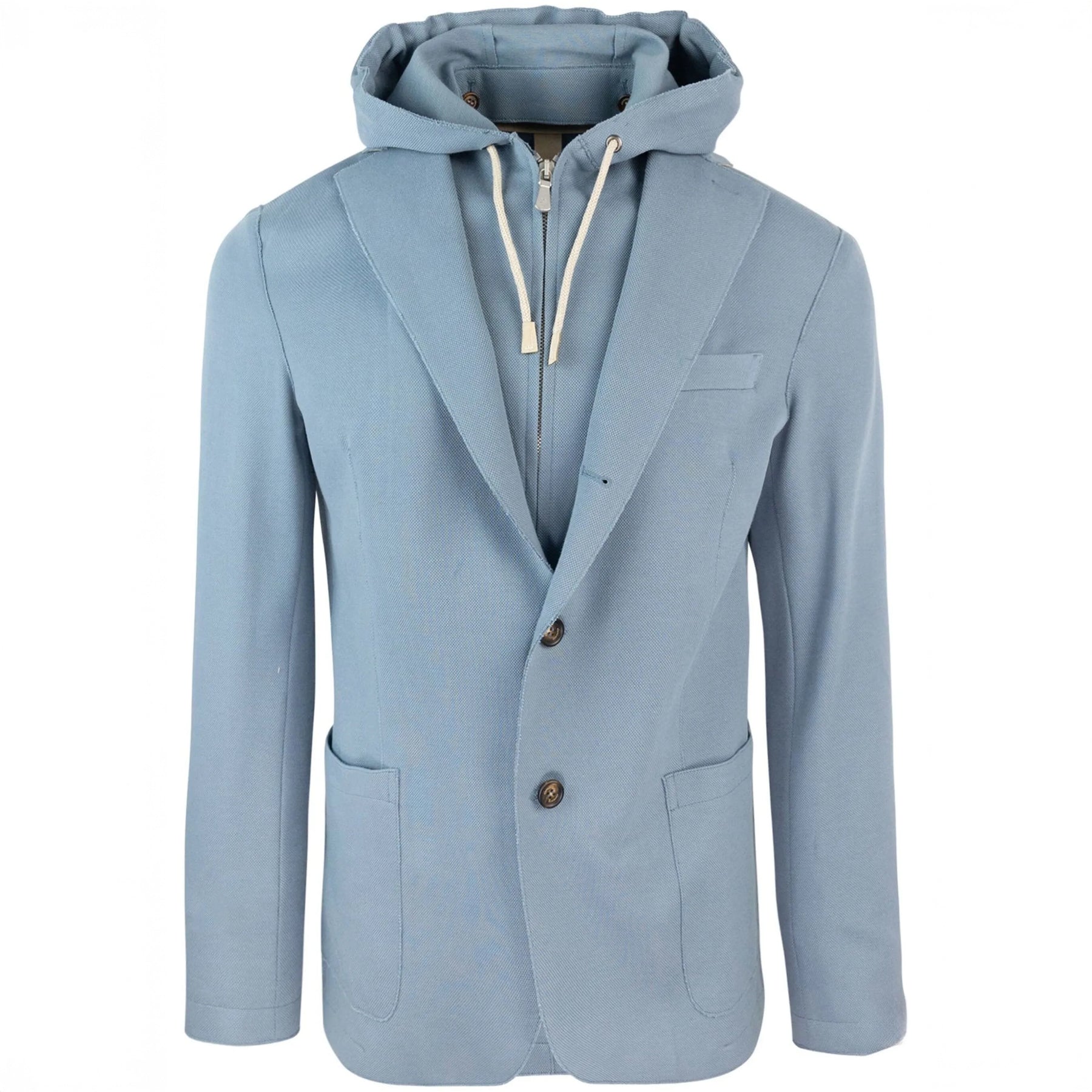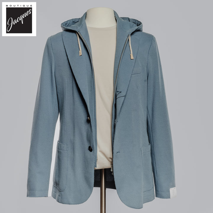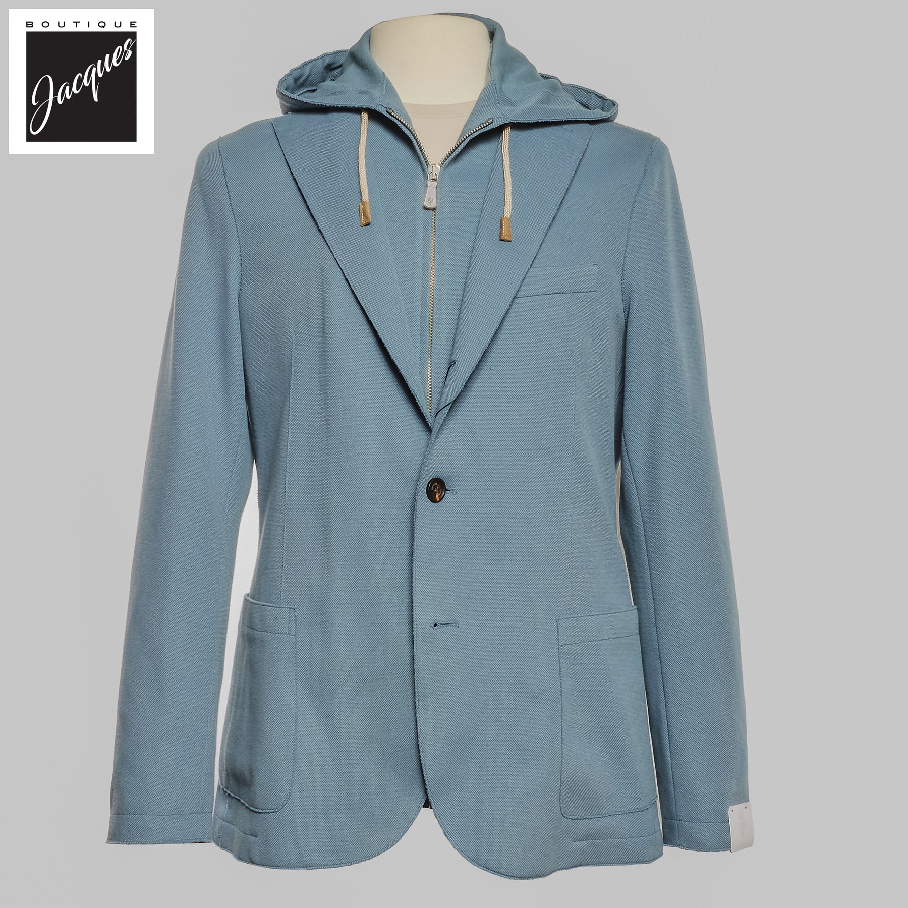 Pair this versatile soft jacket with a crisp white shirt and leather loafers for a polished yet relaxed look. For a more casual ensemble, opt for a lightweight linen shirt or a t-shirt and sneakers. The natural construction and the soft light blue colour makes this piece a versatile wardrobe staple that can be dressed up or down effortlessly.